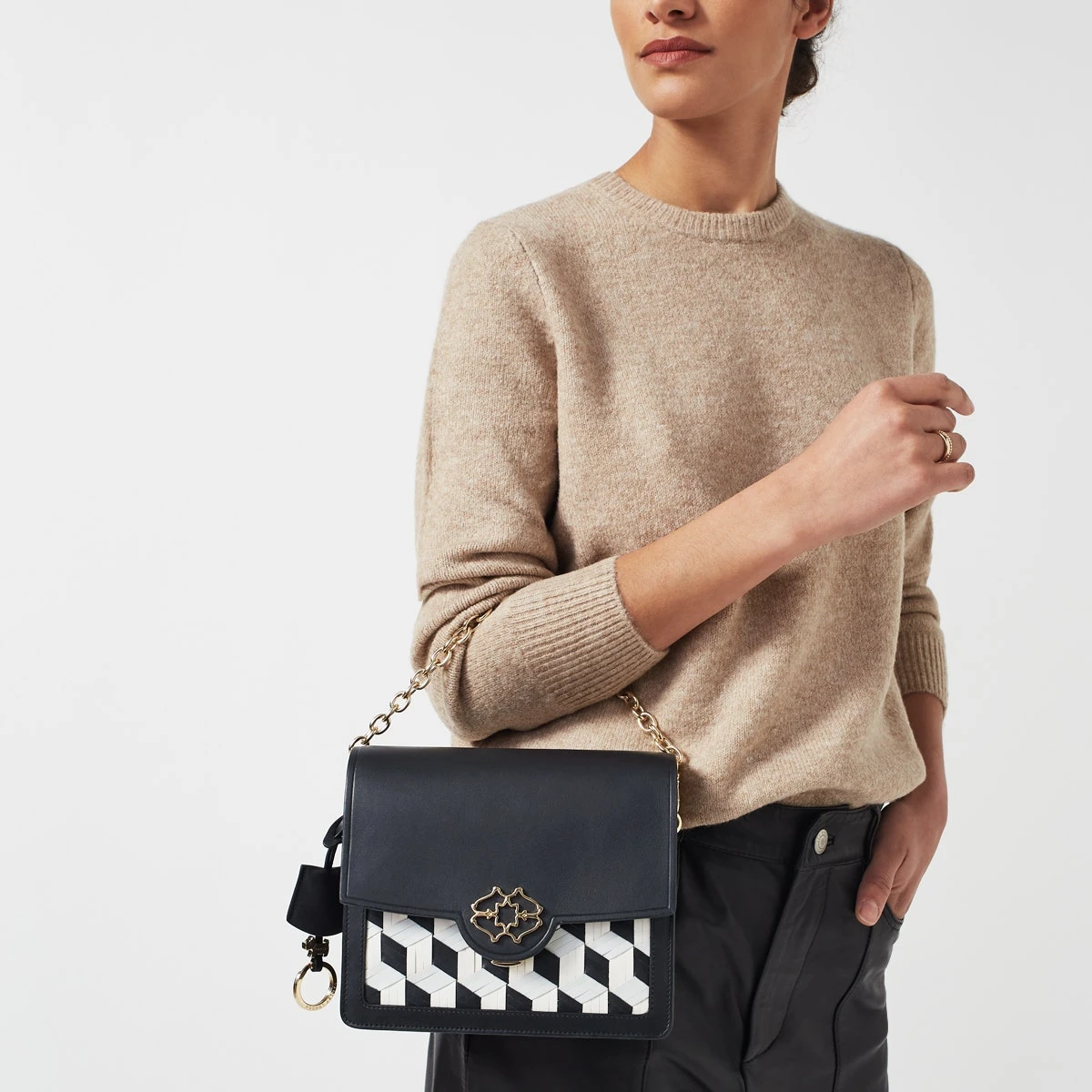 There’s always room for more artisan-crafted details. Like on our Apsley Road cross body, which now features a woven leather panel on the front. Of course, we kept all the other original (and thoughtful) features too – the Heirloom plaque, shiny chain handle and the detachable cross body strap.