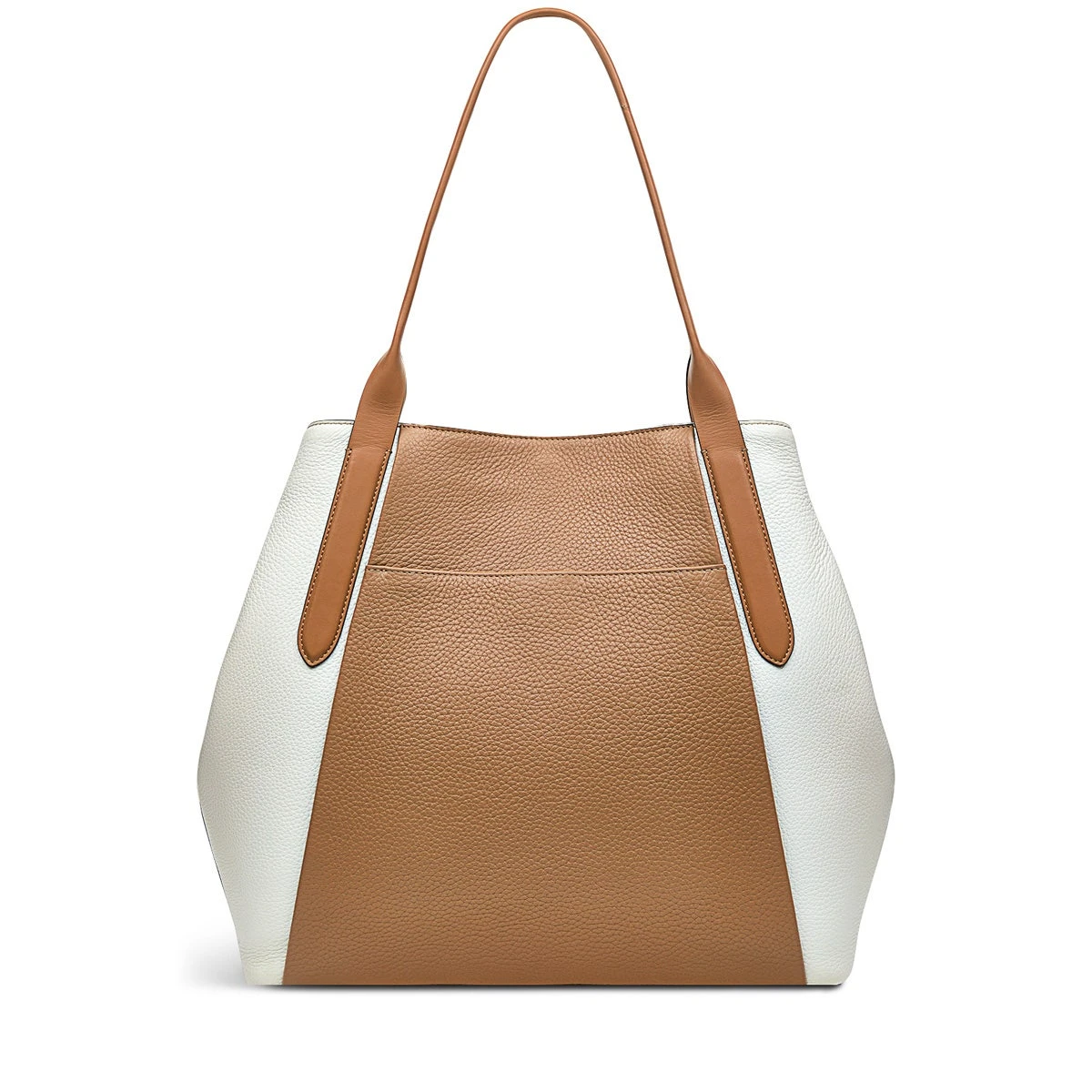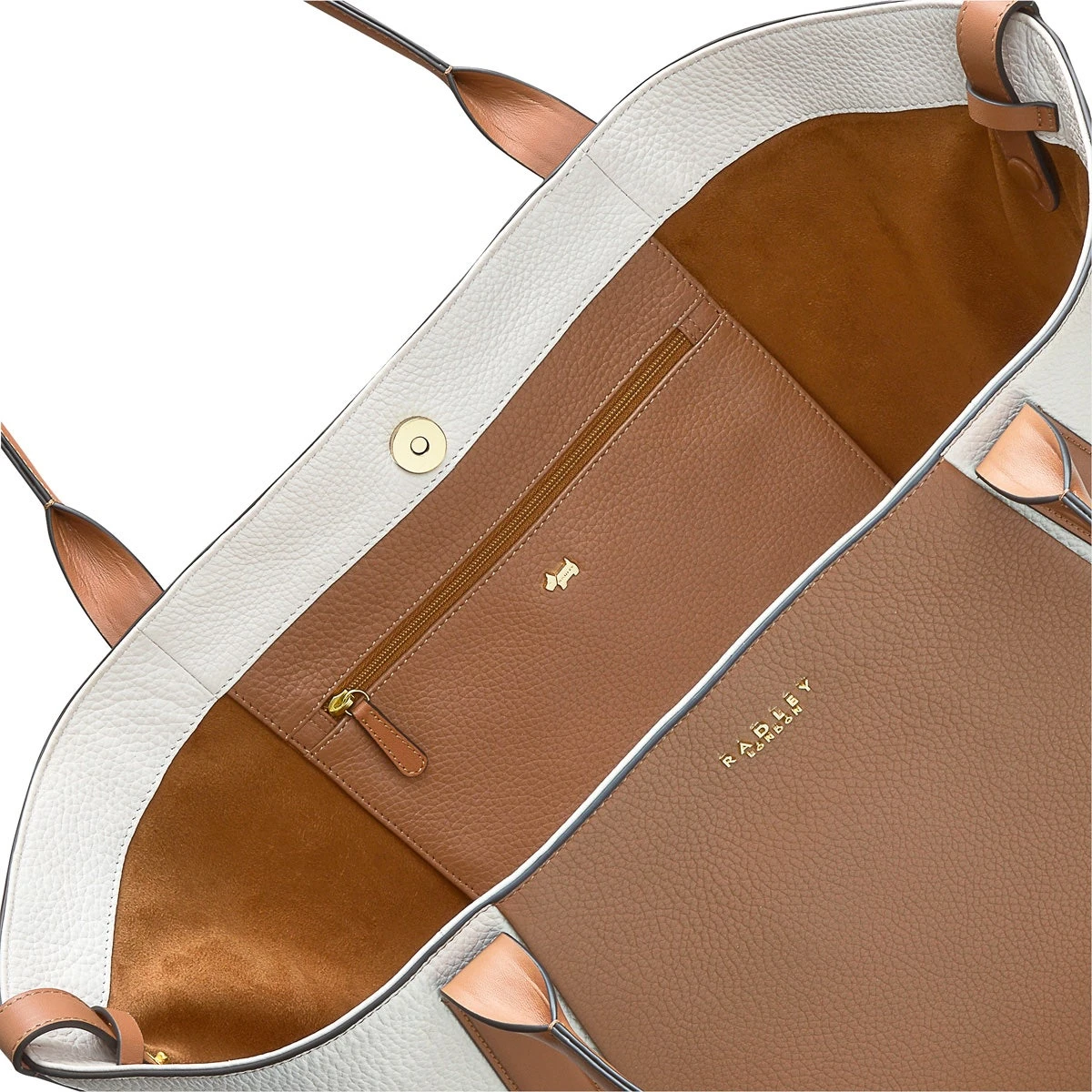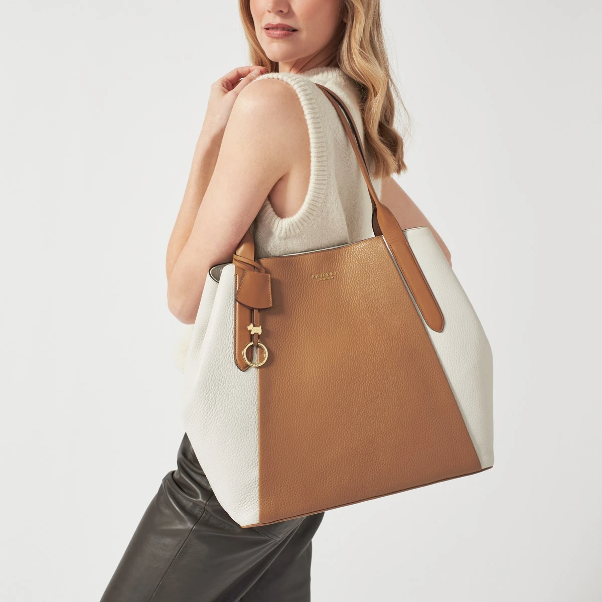 Oversized over everything. This is our spacious Baylis Road 2.0 tote in Color-block grained leather. You can make its spacious shape even bigger thanks to the winged corners. They tuck in with a press stud fastening or fold out for when you need some extra space.