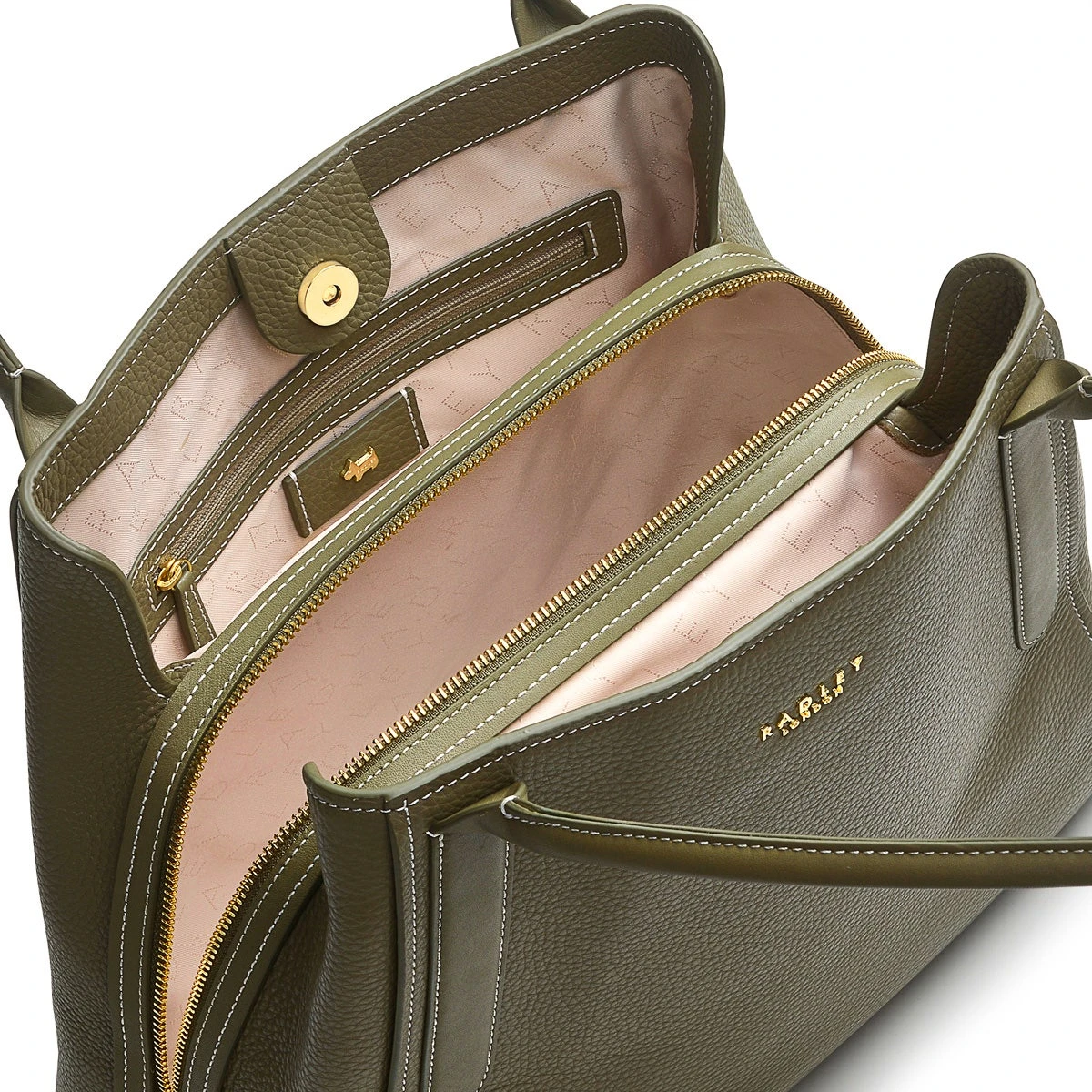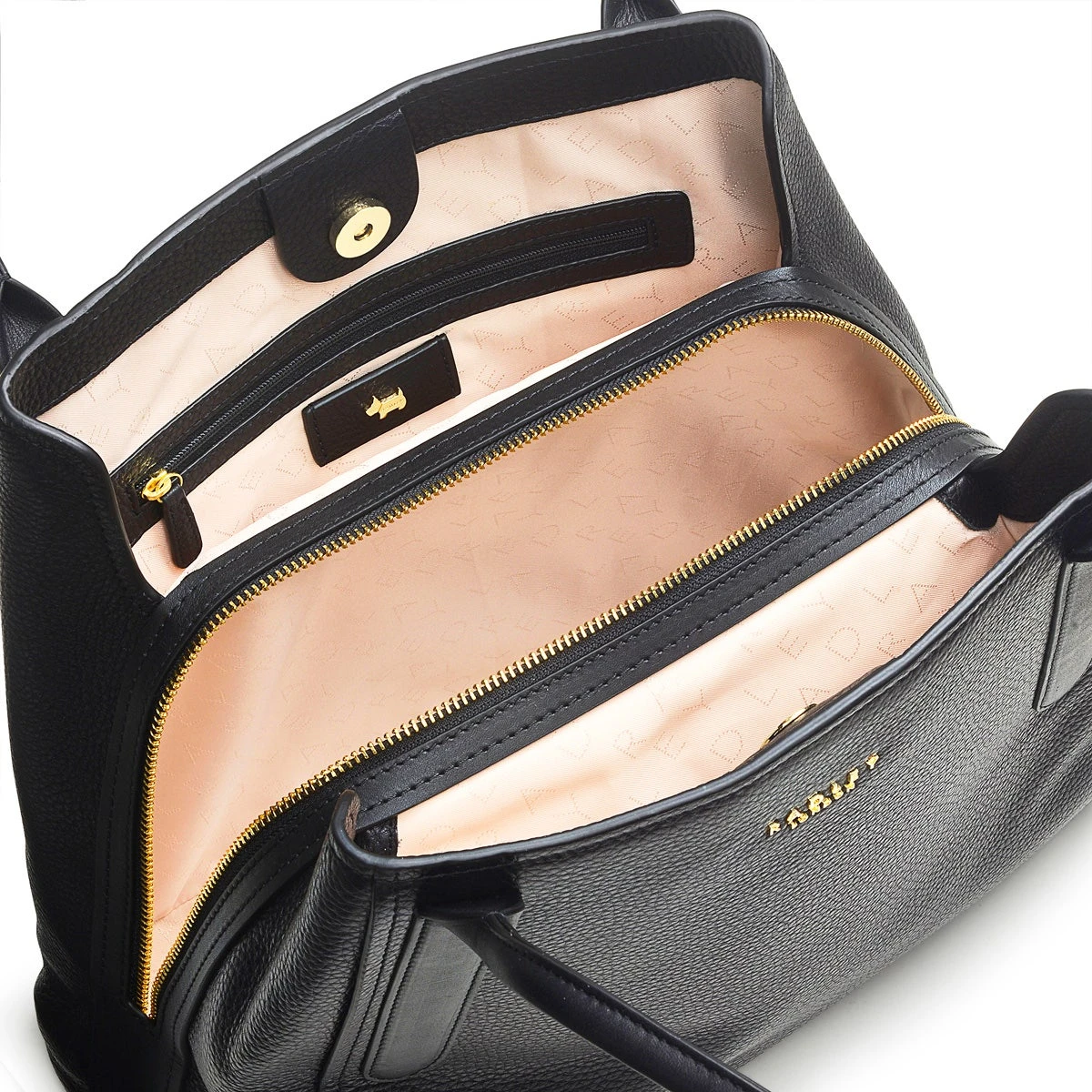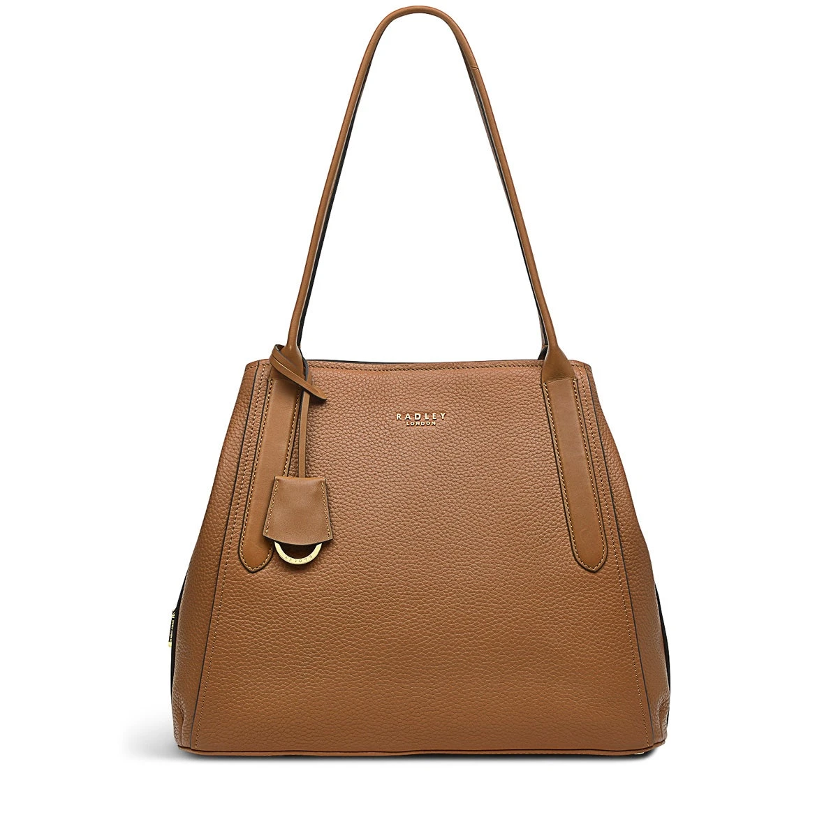 Can you spot the differences on our updated Baylis Road 2.0 shoulder bag? We’ll give you a hint. They’re all on the outside. And no, it’s not just the new premium, soft grained leather. Our Designers have made the smooth padded handle tabs a little longer. The shape a little more refined with painted cut edges. And the hardware a little more elevated. So it looks more modern, but still offers you three practical compartments on the inside: Crafted in premium soft grain leather, Painted cut edge detailing, Twin rolled shoulder straps , Padded elongated handle tabs, Slip pocket to back , Magnetic fastening, Triple compartment interior , Bonded suedette and jacquard fabric lining, Central zipped compartment, Front and back slip sections, Internal zip and slip pockets, Metal feet to base, Metal Radley London logo hardware, Detachable Scottie dog key fob in smooth leather , Comes with a Radley London dust bag