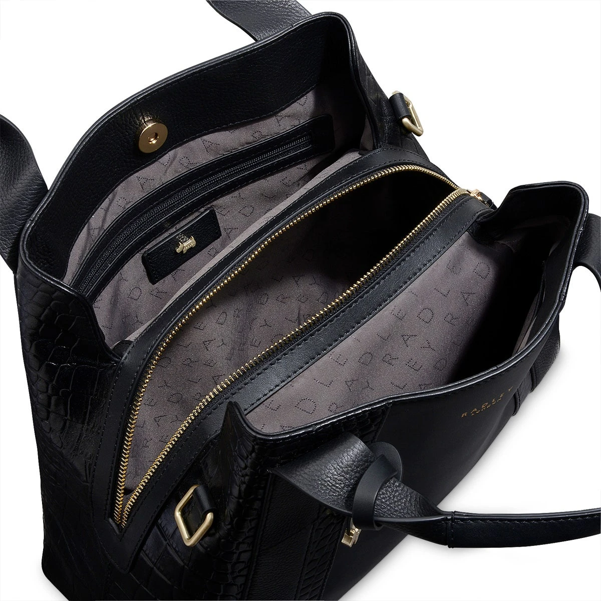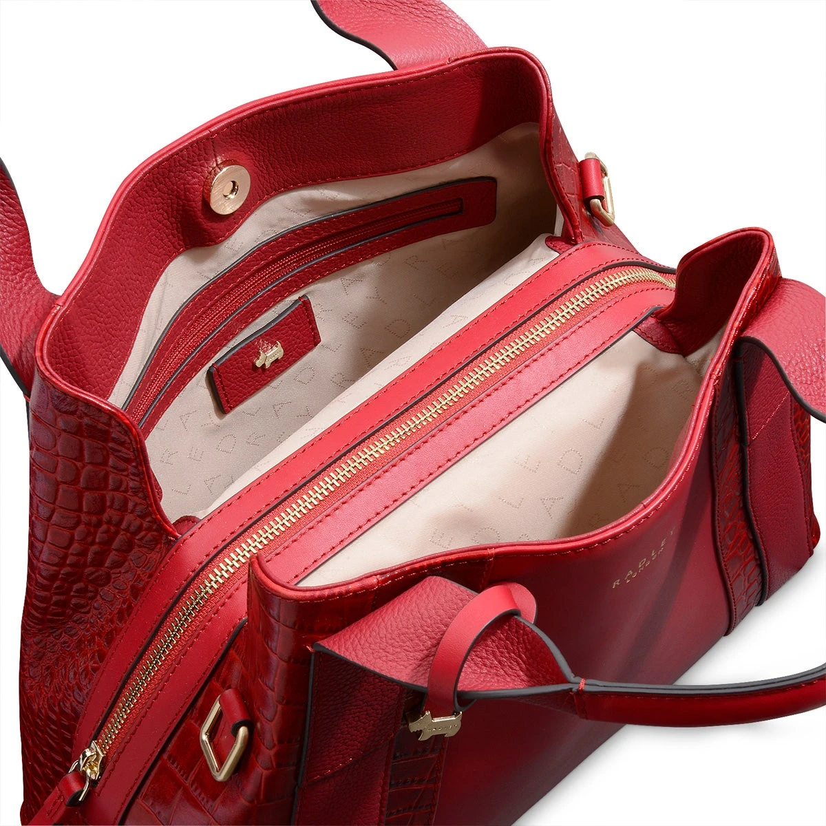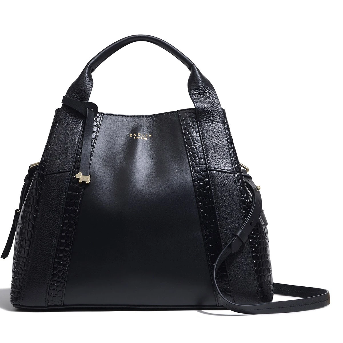 Invest in a handbag that you can take from a midday lunch date to a shopping trip and even into the office – our Baylis Road medium multiway grab bag comes with a spacious triple compartment interior to hold every essential you’ll need throughout the day. Crafted in grained leather that’ll retain its quality for years to come, this bag is also styled with mock croc trims and sides for a luxury contrast finish. Inspired by a heritage Radley London bag, it has a triangular shape with two handles that are layered onto the bag’s exterior.