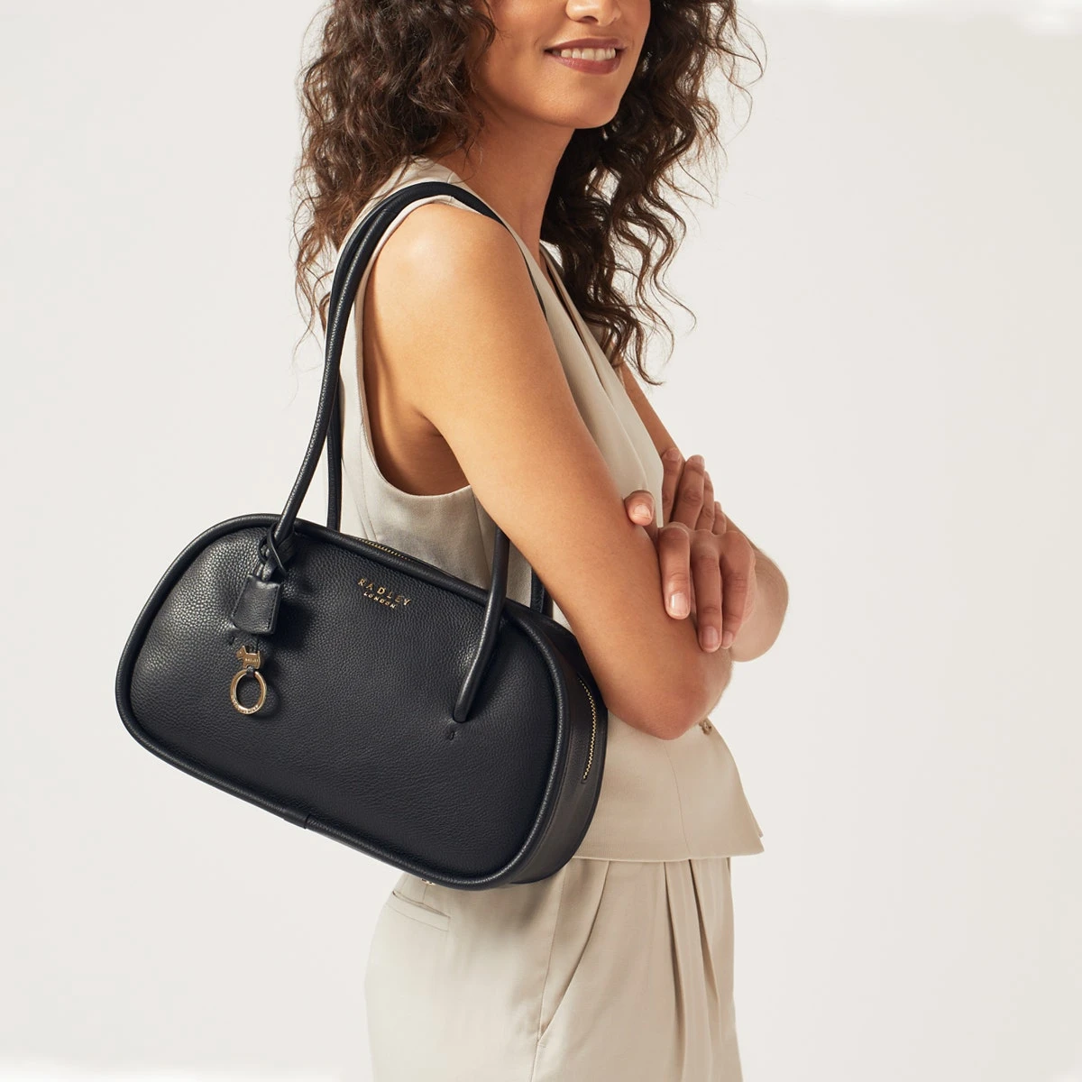 A bowling bag but make it artisan crafted. That would be our new Bexley Street style, a retro, rounded shoulder shape in fine-grain leather. We’ve given it practical features like tubular straps and a spacious interior. But the chunky edge piping? That was just for fun.