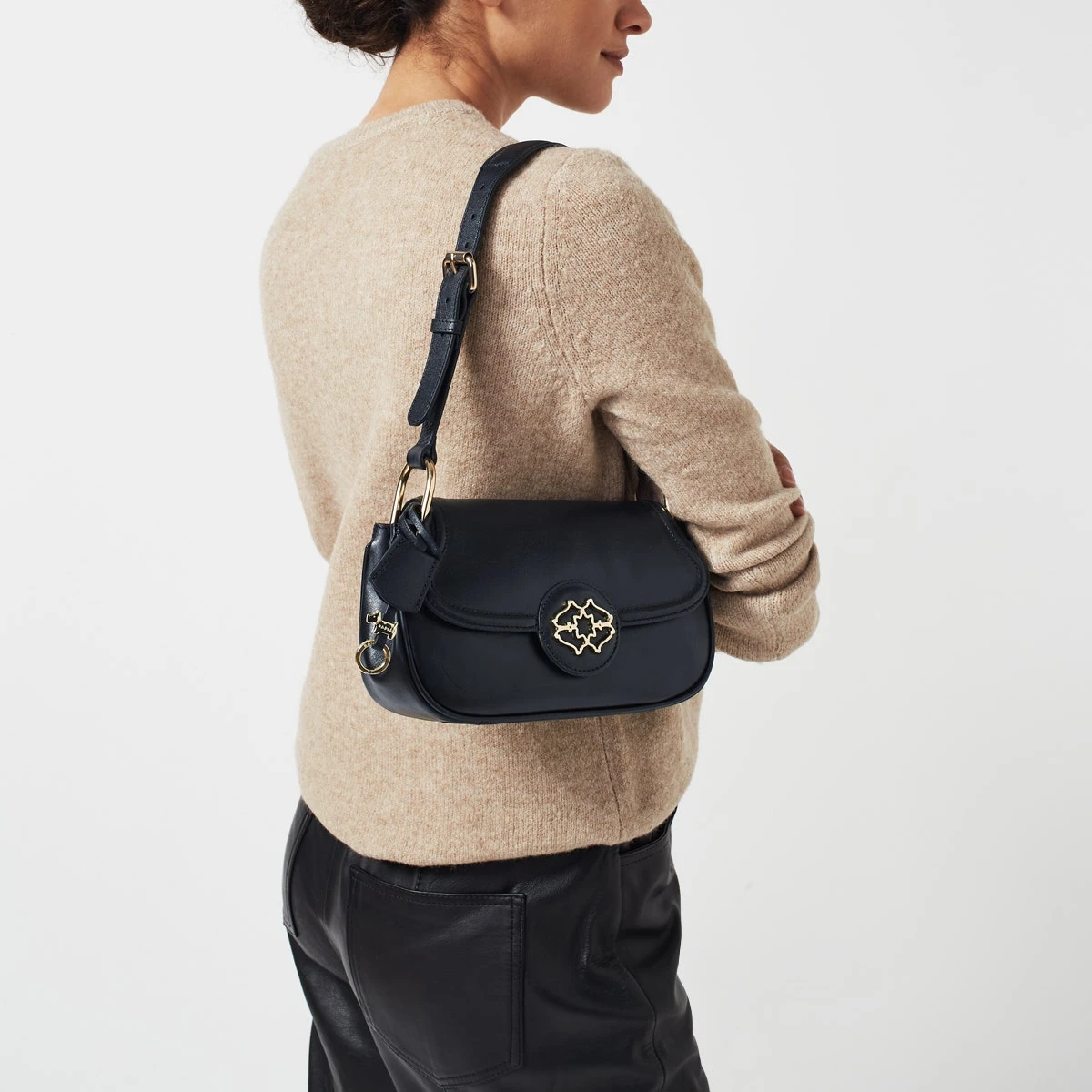 Made to last. That’s what you can always expect from our handbags. Including Camley Road in vegetable tanned leather. This shoulder bag is bursting with shiny hardware details, from the buckled strap to the Heirloom plaque logo on the flap.