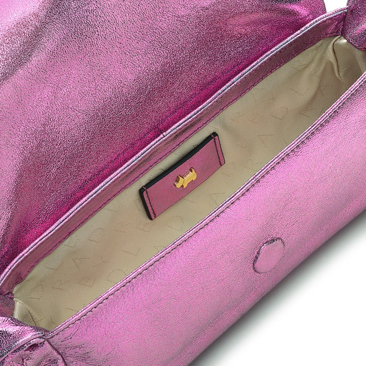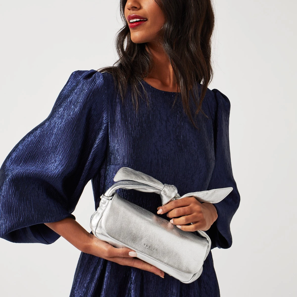 When creating Cranwell Close, our Design Team wanted it to be the perfect compact occasion bag. So, it might be small, but theres no denying its packed full of character. From the gathered sides to the new shimmering metallic leather. And it still features the signature soft knotted handle that can be retied to the perfect length. Theres expert craftsmanship and attention to detail in every part of it.