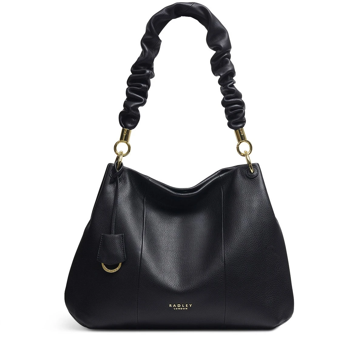 As we enjoyed new adventures, this season’s colour palette has brightened with patterns and details becoming bolder – just like the ruffle trim on our updated Cuba Street bag. This style features the same looping hardware and slouchy hobo silhouette in panelled grained leather, but now its handle is playfully wrapped in ruffled leather. Comfortable to carry on the shoulder and offering enough room to hold all of your essentials, this shoulder bag is destined to become everyone’s favourite everyday accessory: Crafted in panelled grained leather, Ruffled leather-wrapped handle, Loop hardware, Magnetic fastening, Interior pockets, Detachable Scottie dog key fob, Foil embossed Radley London print, Comes with a Radley London dust bag