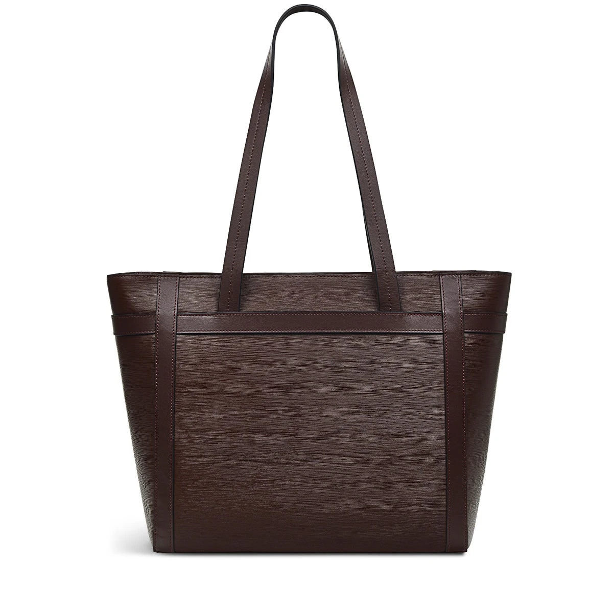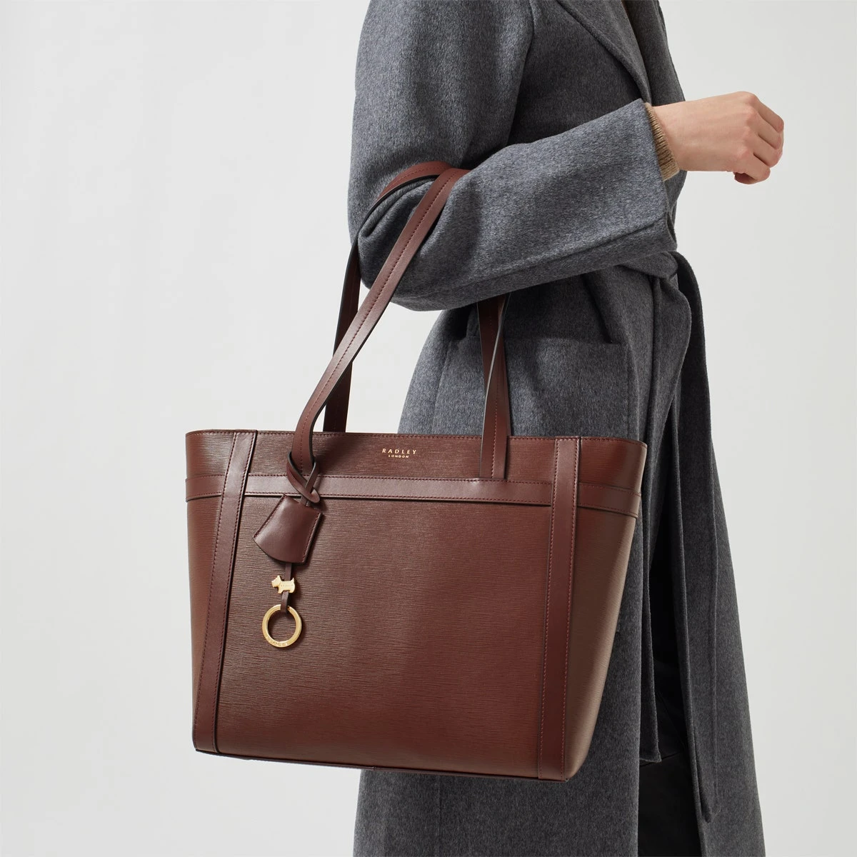 One of our favourite silhouettes. It’s the trusty tote bag, here crafted with our hard-wearing bark textured Saffiano leather. From the Derby Street collection, this style also features contrast smooth leather trims, branded hardware and our signature logo details. Fill yours and slip it onto your shoulder to prepare for everything the day has to throw at you.