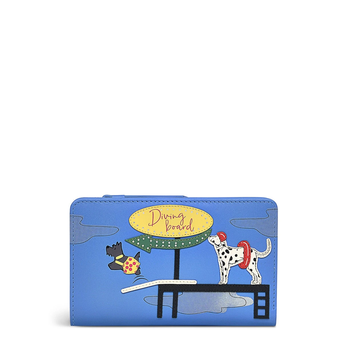 Making a splash. That’s what our Scottie is up to on the Diving Board medium purse, along with one of his four-legged friends. See them playing in leather applique and screen prints on the front of this spacious style. Complete with a silver zip and branded puller that will keep your items secure inside.