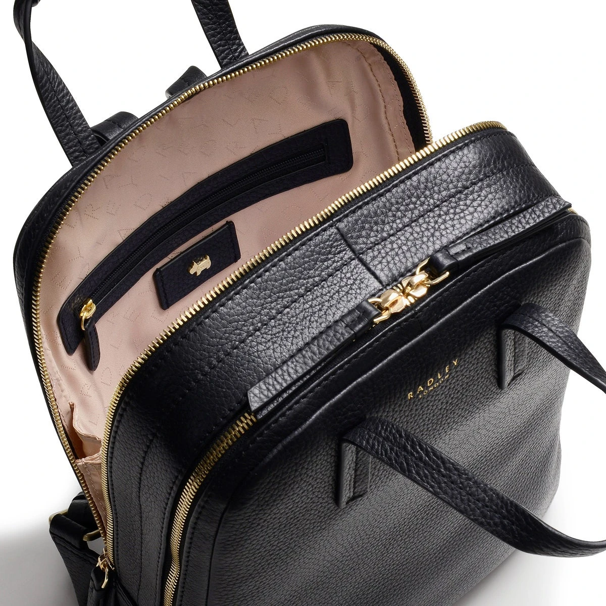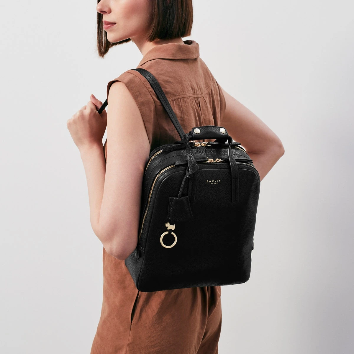 The Dukes Place collection is one of our Design Team’s biggest success stories. Made with natural veg tan leather, the medium backpack is made to last a lifetime. And its readytodashout minimalism already makes it a firm favourite with women who are going places. Inside you’ll discover two spacious compartments for organising your essentials. So you always know exactly where your keys are. What a lifesaver: Crafted with natural veg tan leather, Painted cut edge details, Twin grab handles, Twin adjustable shoulder straps, Dualcompartment interior, Zipped sections, Fabric jacquard lining, Internal zip and slip pockets, Foil embossed Radley London logo, Metal feet to base, Detachable leather and metal Radley dog, Comes with a Radley London dust bag ,