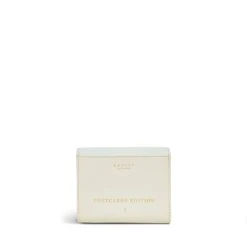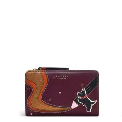 Zoomies. But the moped kind, as our Scottie is driving his on the front of the Enjoy the Ride cardholder. This scene catches him on his latest adventure, as he explores while pulling a string of colourful ribbons behind him. A signature shape in smooth leather, brought to life with screen prints and Applique details.