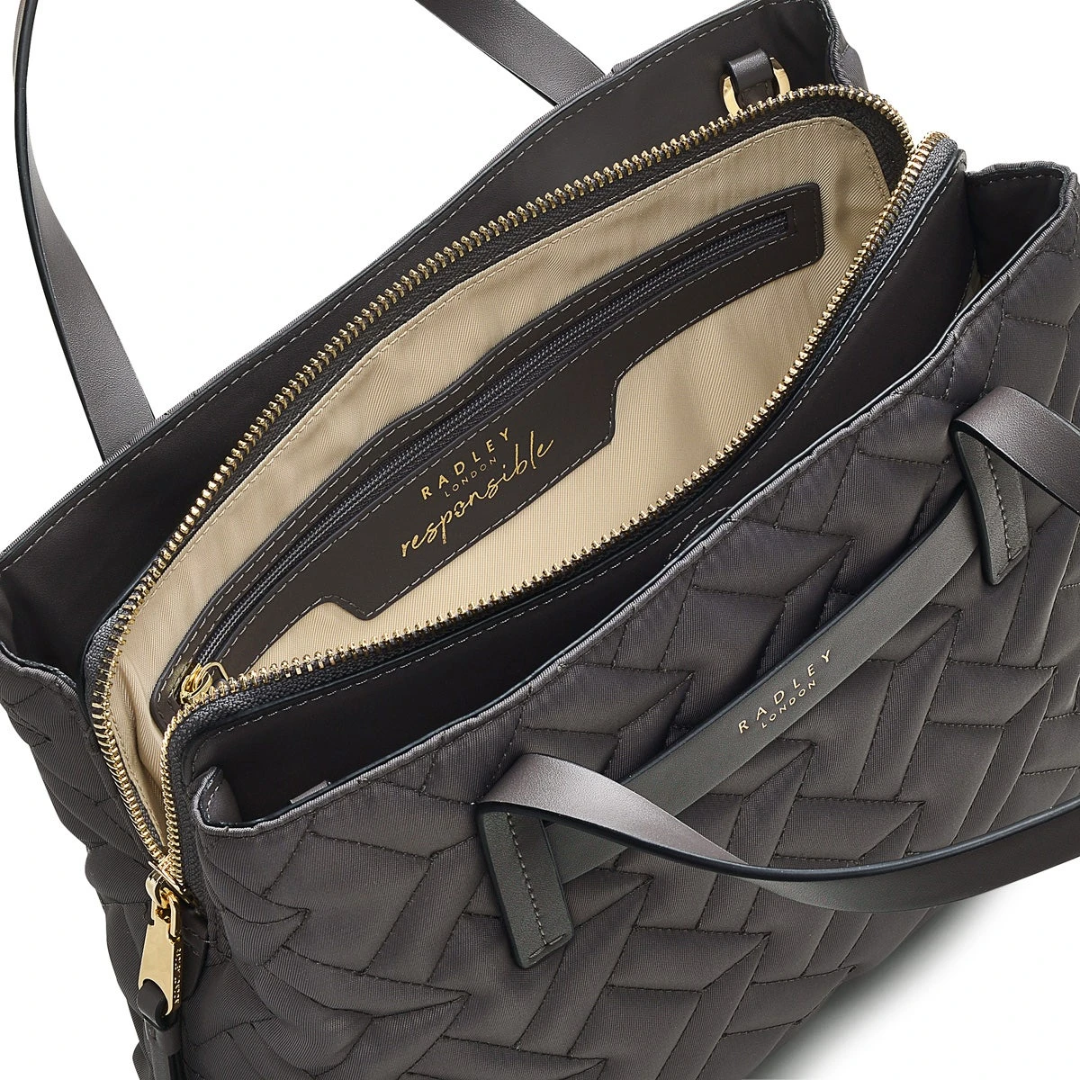 You’ll know this name. We love talking about Finsbury Park and its sustainable materials, because our quilted multiway bag is crafted using recycled polyester (made from plastic bottles) and water-based PU trims. Which means even in Black, it’s actually pretty green.