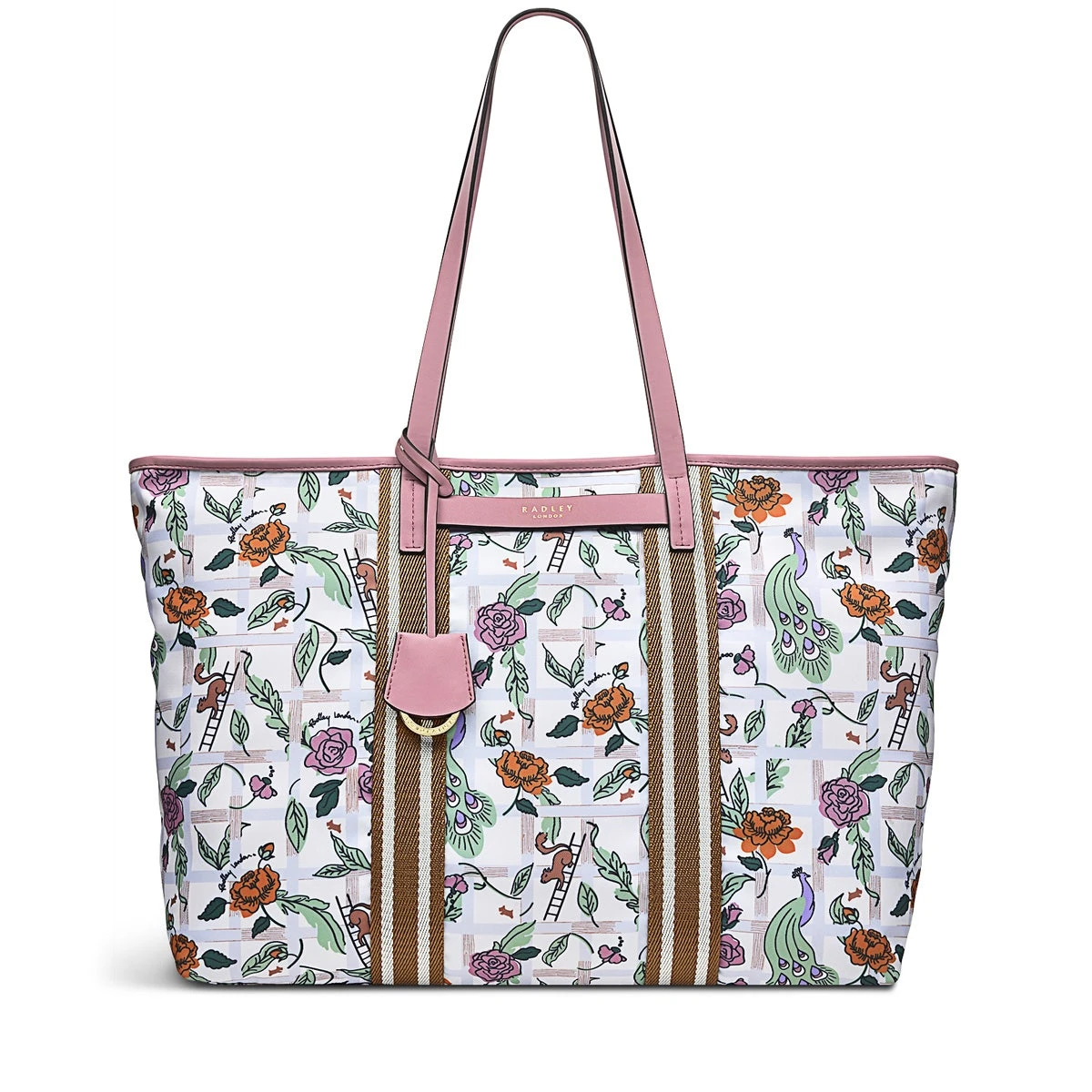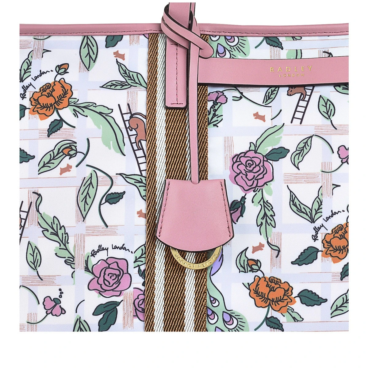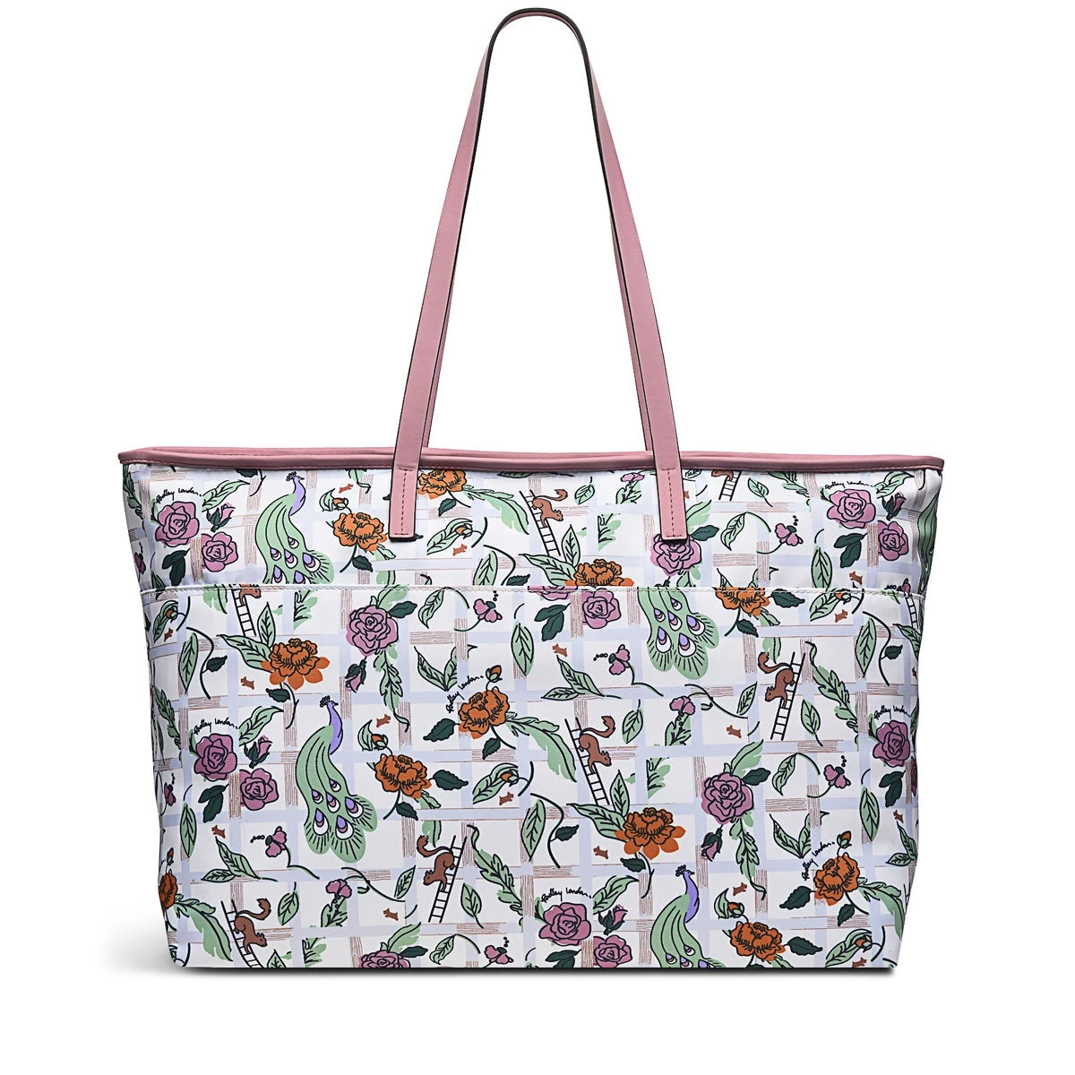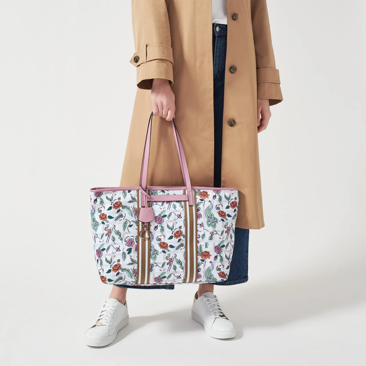 Our prettiest edition yet. The Finsbury Park Regents Rose collection is printed with a floral trellis illustration. As always, our spacious shoulder tote (which has room for your laptop) is crafted using recycled polyester made from plastic bottles, with pretty-in-pink trims.