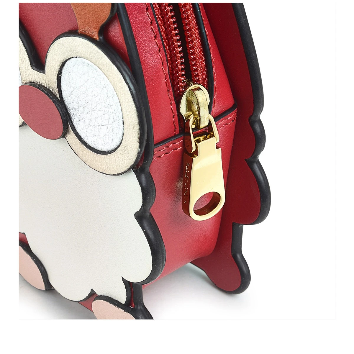 Our delightful gnome leather bag charm is back. And this time, its the new, festive Noel character. Crafted with appliqué, shimmering metallic leather sunglasses and a pair of reindeer antlers. Hell hold your mini essentials in the centre compartment and can be easily attached to your bag or keys.