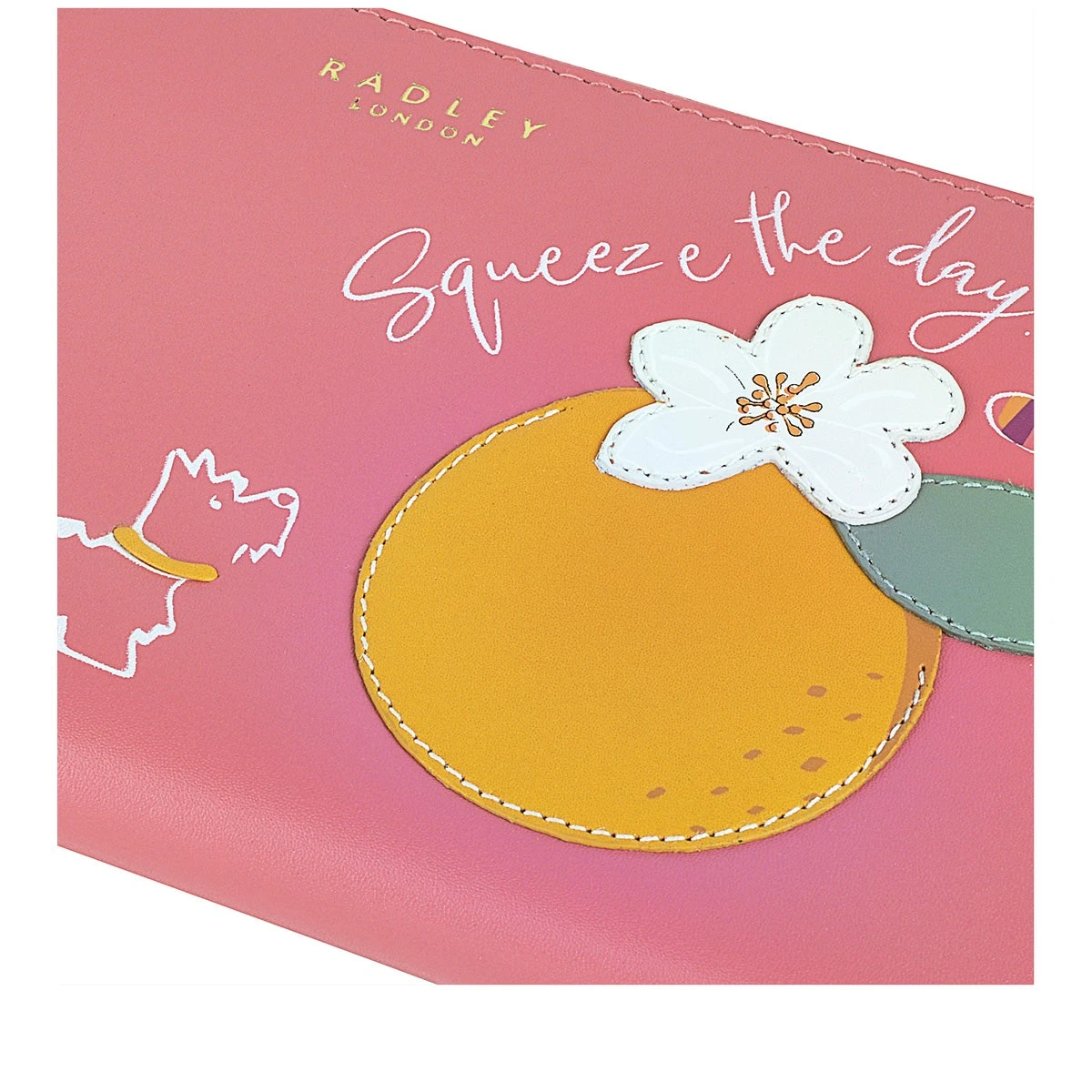 Positive mottos often make their way onto our accessories. Those like ‘seize the day’. Or ‘squeeze the day’ if, like us, you’ve been shopping for fruit and veg at your local market. This fun phrase inspires the large zip-around purse from the Groceries collection. Crafted in smooth leather with a colour-pop interior, zesty appliqué and a Scottie dog print for added sweetness.