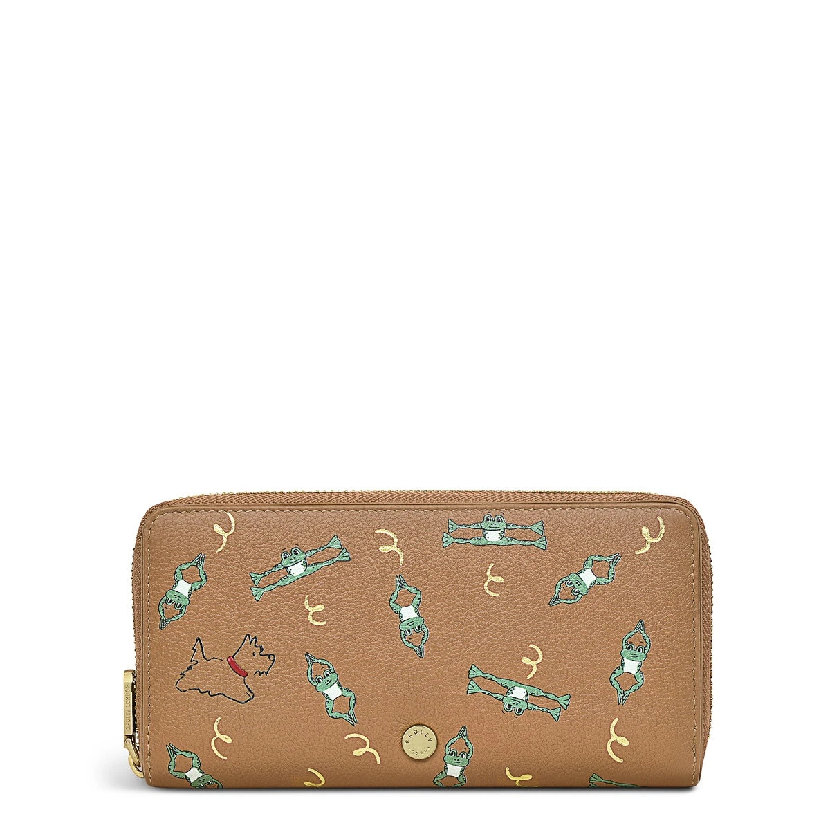 Springs for spring. Ground-breaking. Blame the little frog who’s hopping all over the Jumping For Joy zipped purse. Crafted using printed grained leather, this playful accessory will have you smiling every time you pull it out of your bag. Finished with our Scottie dog and a branded stud.