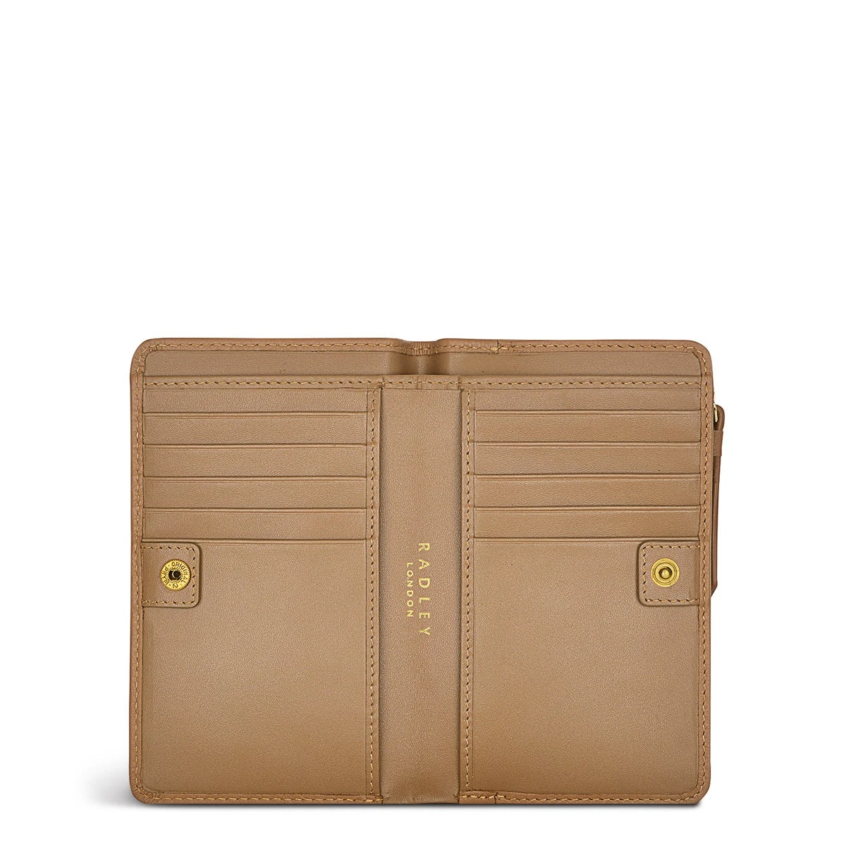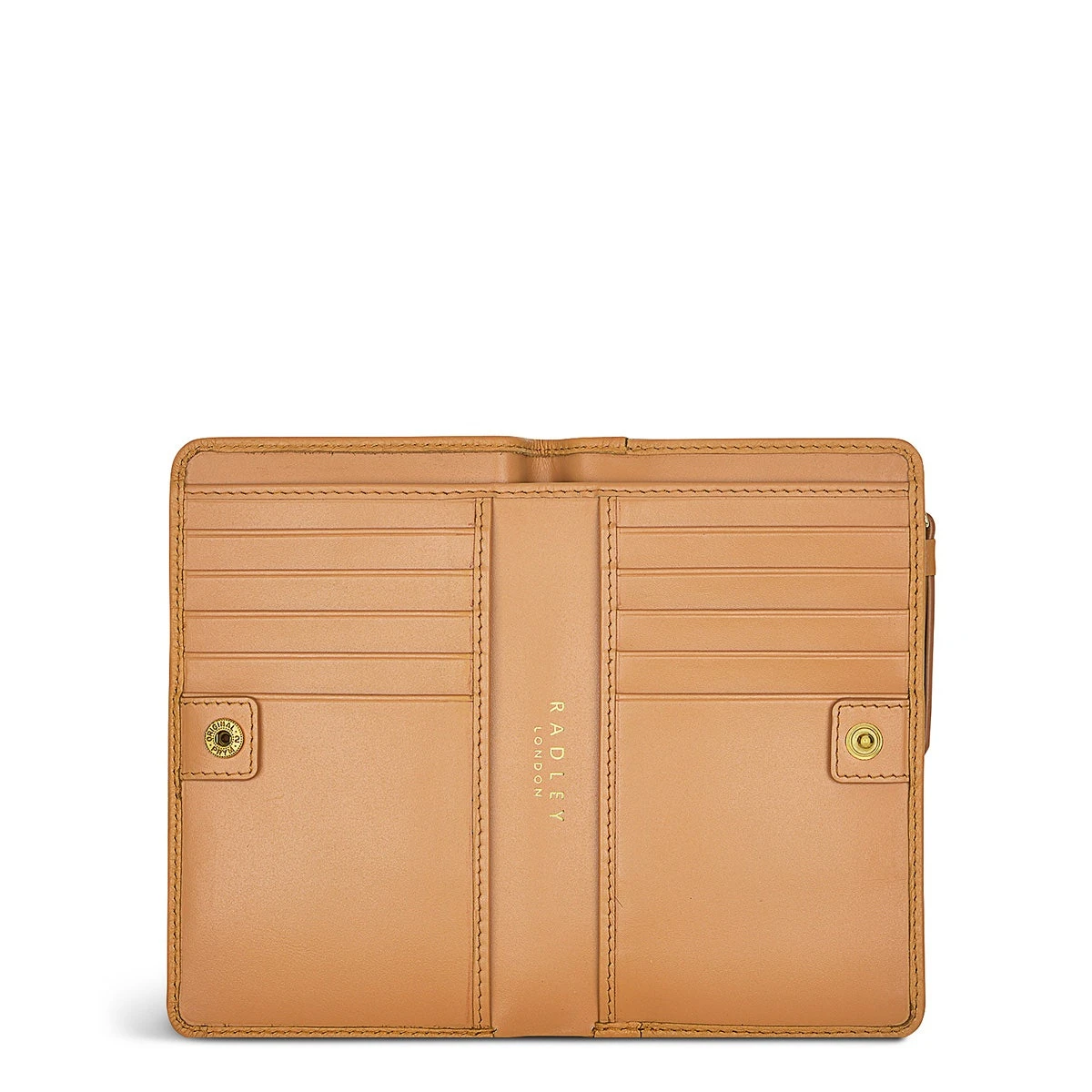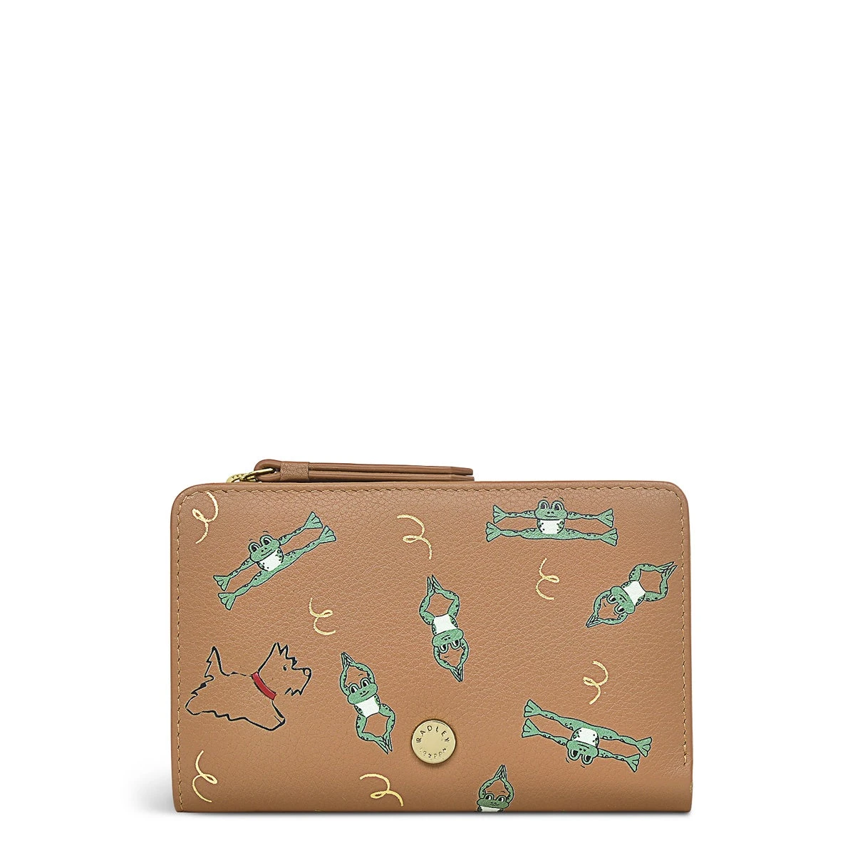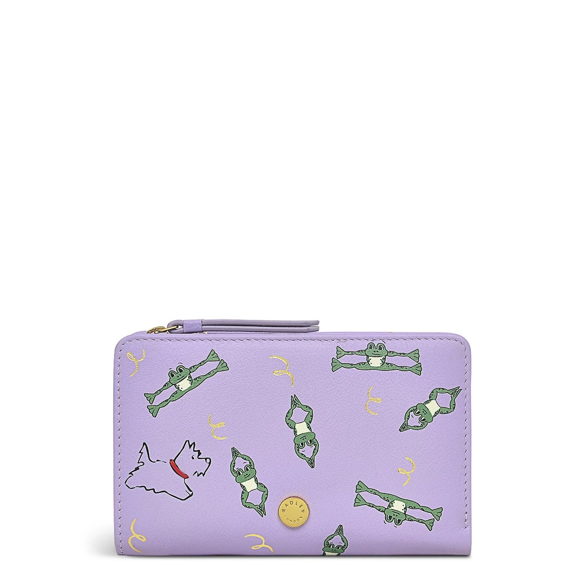 Springs for spring. Ground-breaking. Blame the little frog who’s hopping all over the Jumping For Joy bifold purse. Crafted using printed grained leather, this playful will have you smiling every time you pull it out of your bag. Finished with our Scottie dog and a branded stud.