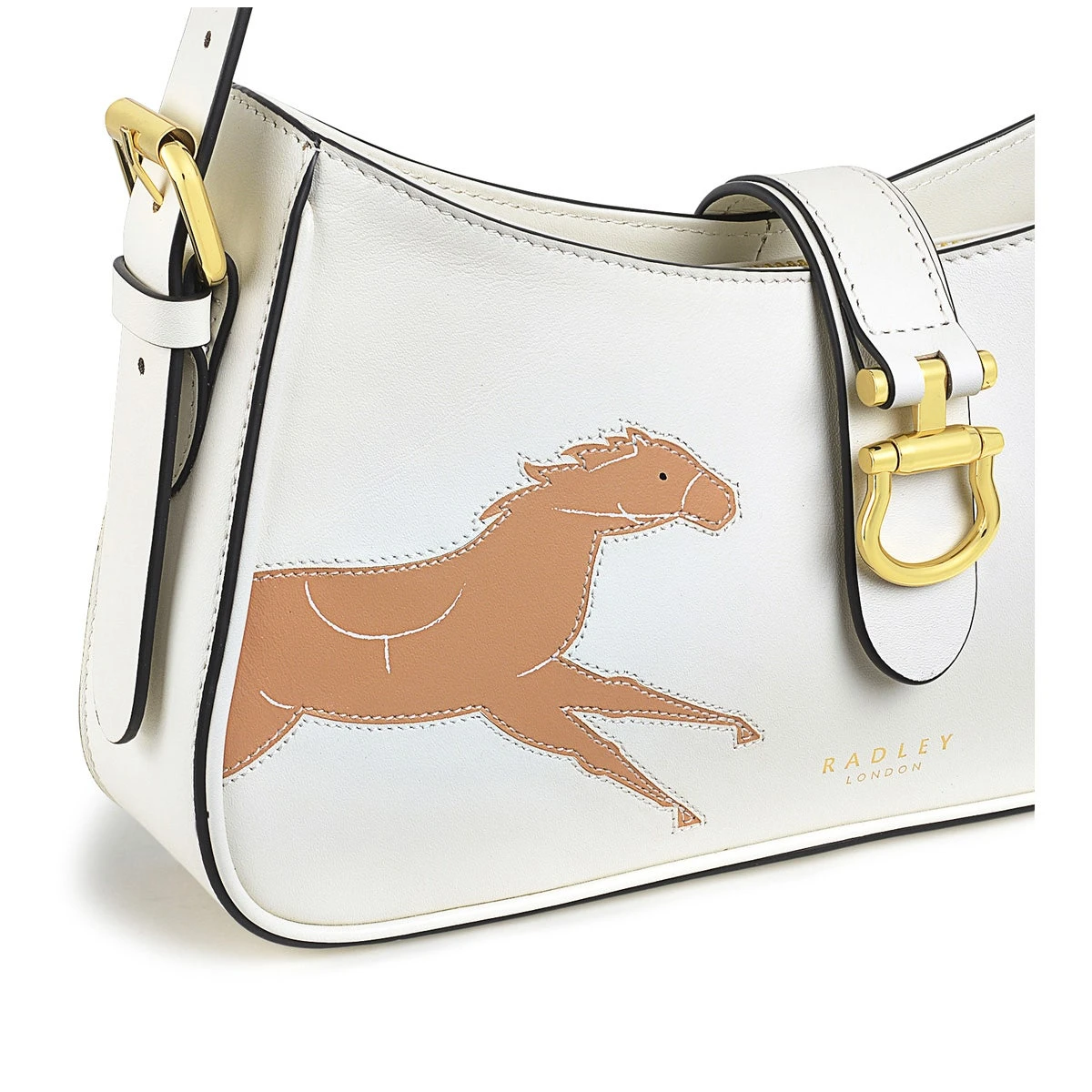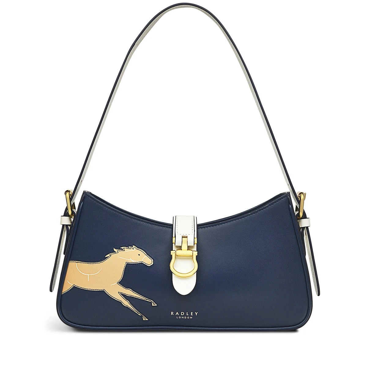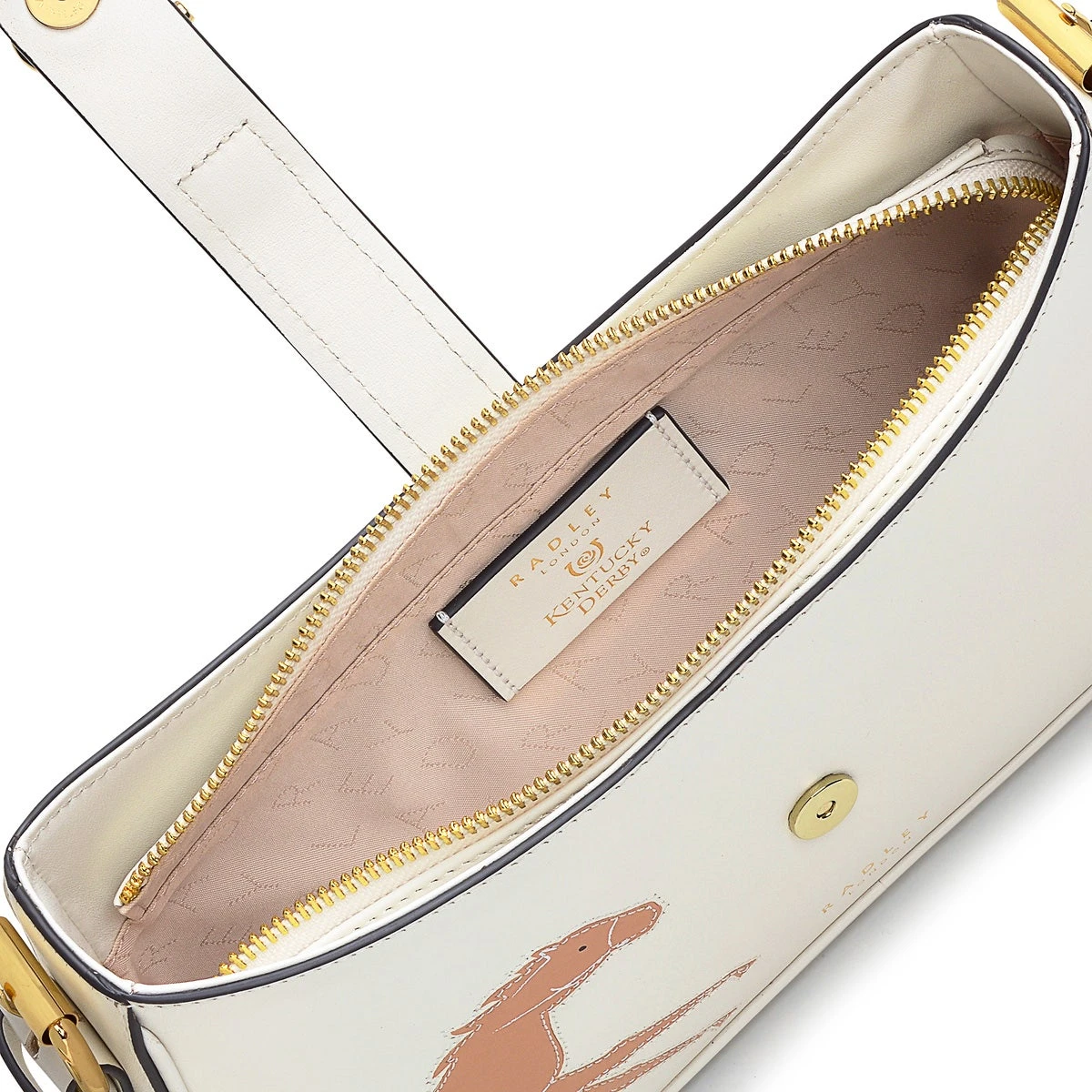Ahead of the style stakes. That’s because this Kentucky Derby shoulder bag is based on our coveted ’90s Linden Gardens shape. Complete with the same equestrian bridle hardware and painted cut edges. This updated slim silhouette features an inlaid leather horse and a layered applique charm inspired by the event’s official flower.