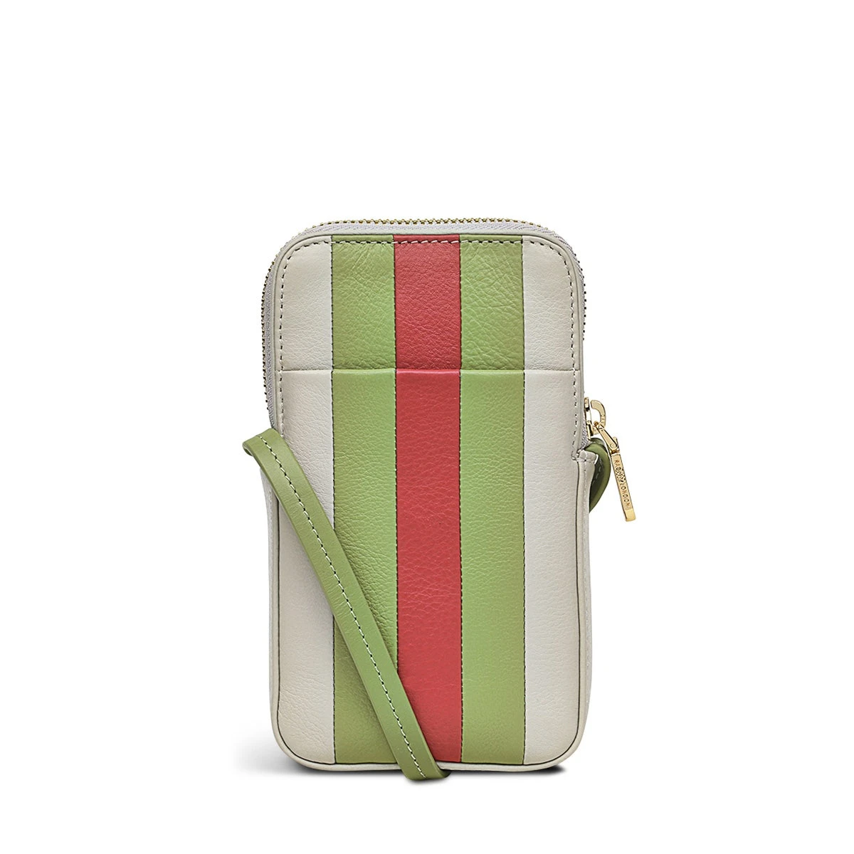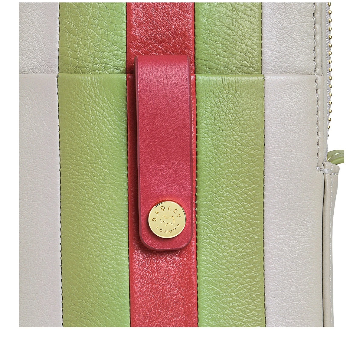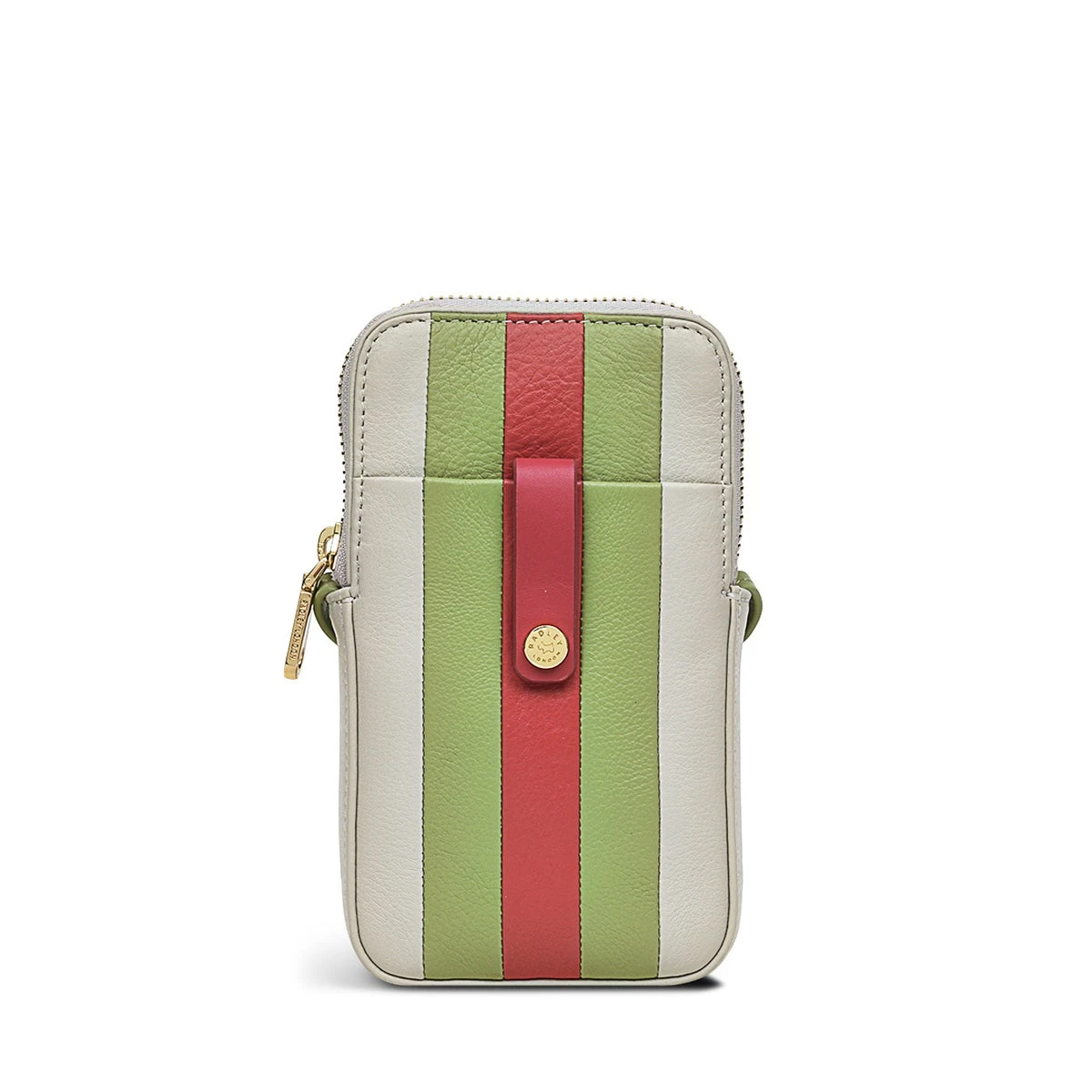 A new addition to an iconic collection. This phone cross body bag joins the Larkswood 2.0 purses with the same press stud tab, branded rivet stud and a few interior card slots. A colourful, handy accessory crafted using striped panels of soft grained leather and an adjustable strap.