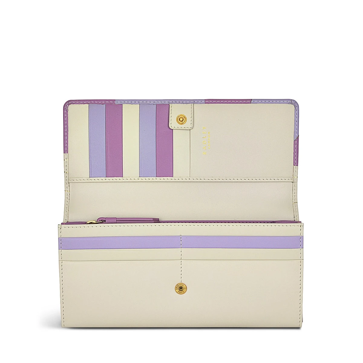 Mini craftsmanship. Because no accessory is too small for intricate detailing. That’s why you’ll find layers of tonal applique across the large Lavender Fields wallet. Capturing our Scottie (in his signature stitched collar) enjoying the sunset, with metallic foil and screen print finishes.