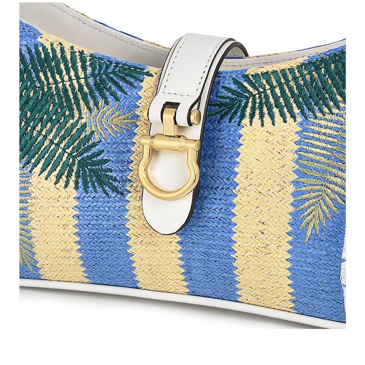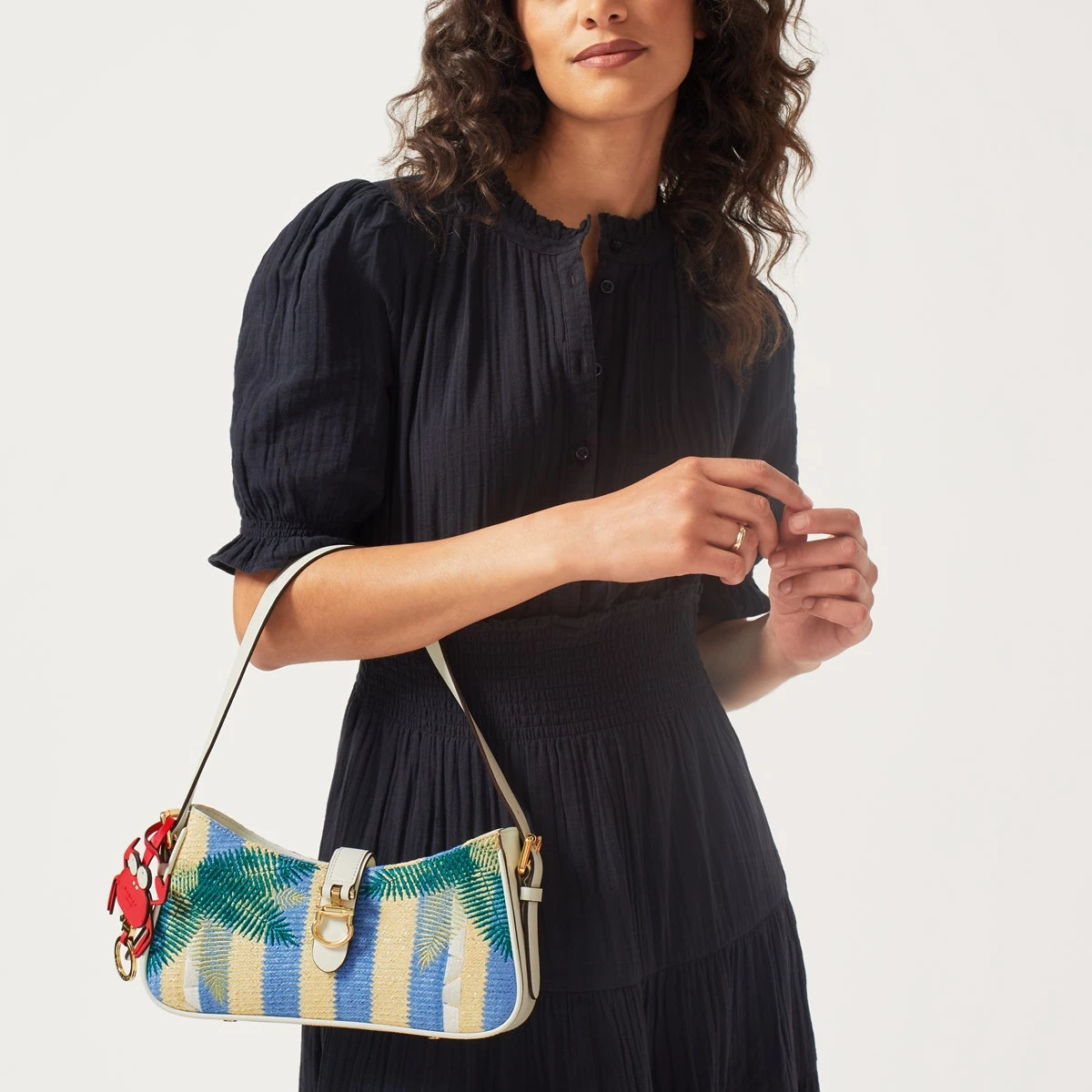 Out of office on. For our slim shoulder bag at least. The Linden Gardens style is ready for its summer holiday – somewhere with tropical trees, striped sun loungers and even a friendly crab. Crafted with woven raffia-style fabric and leather trims, we think it’s perfect for sunny days in the city too.