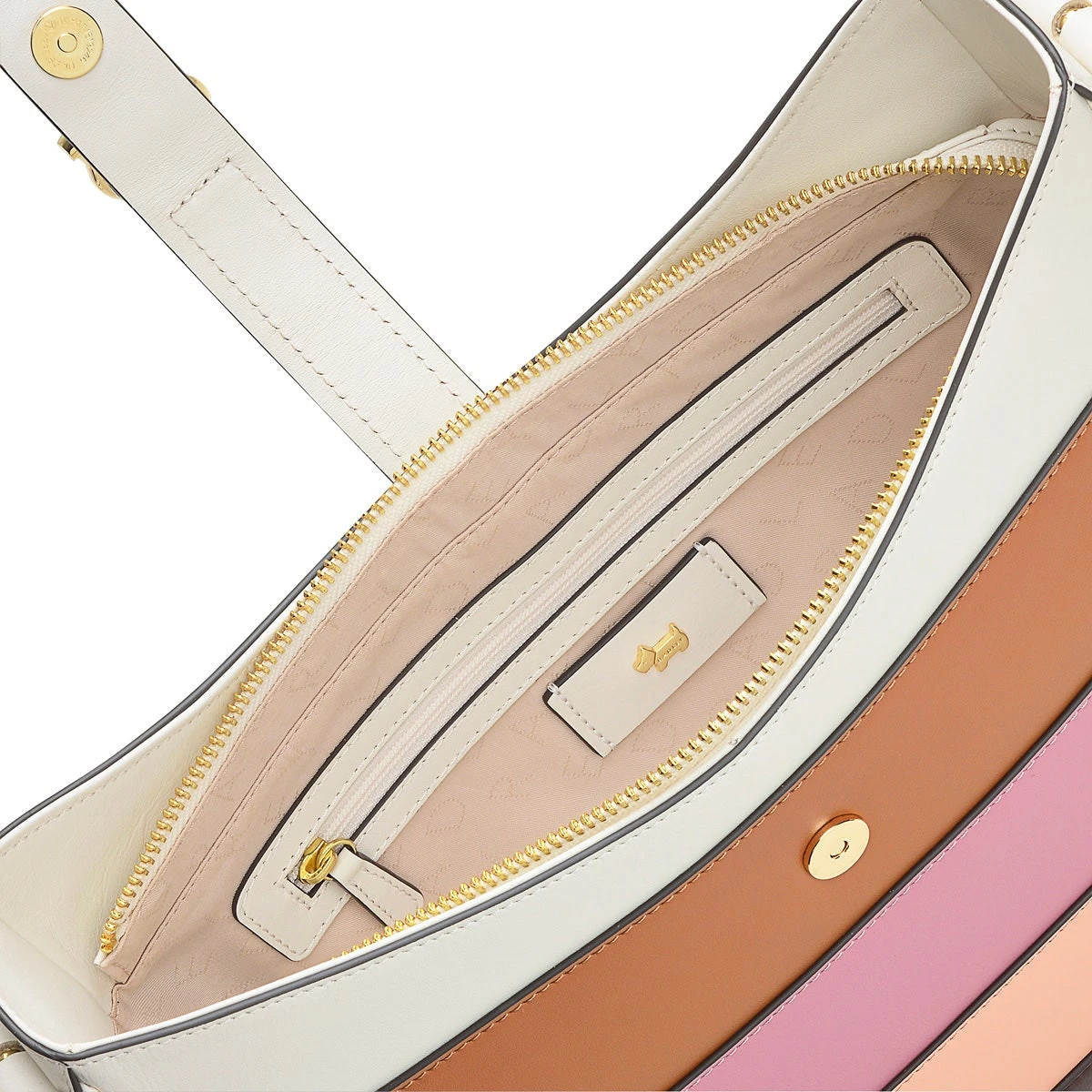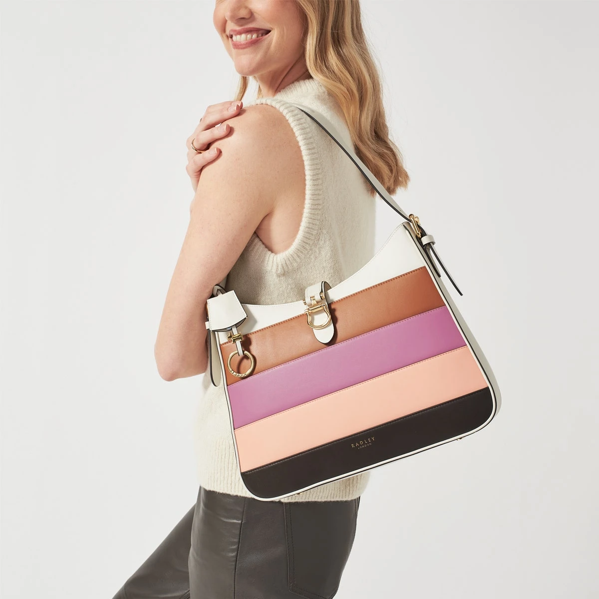 Earn your stripes. Linden Gardens has. Our on-trend ‘90s shoulder bag is such a key shape, we thought it deserved a new edition – one crafted with layered leather stripes. Crafted with kinder-to-the-planet vegetable tanned leather, edge piping and shiny buckle and bridle hardware.