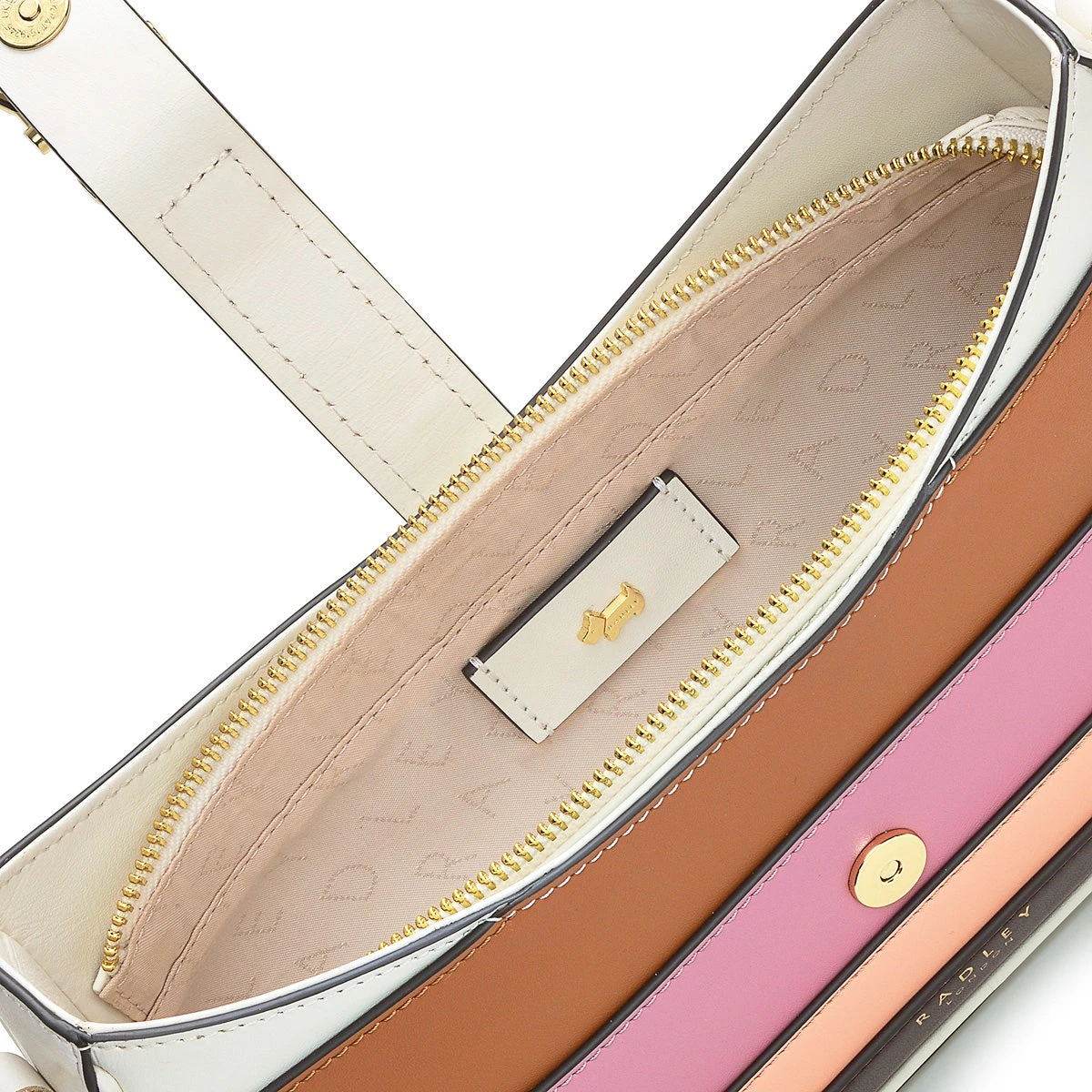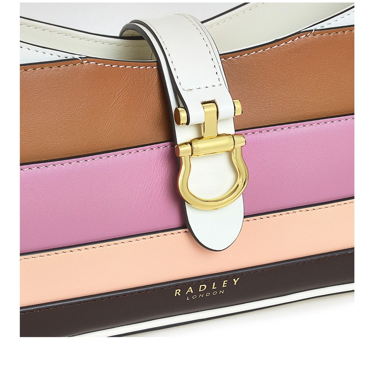 Earn your stripes. Linden Gardens has. Our on-trend ‘90s shoulder bag is such a key shape, we thought it deserved a new edition – one crafted with layered leather stripes. Crafted with kinder-to-the-planet vegetable tanned leather, edge piping and shiny buckle and bridle hardware.