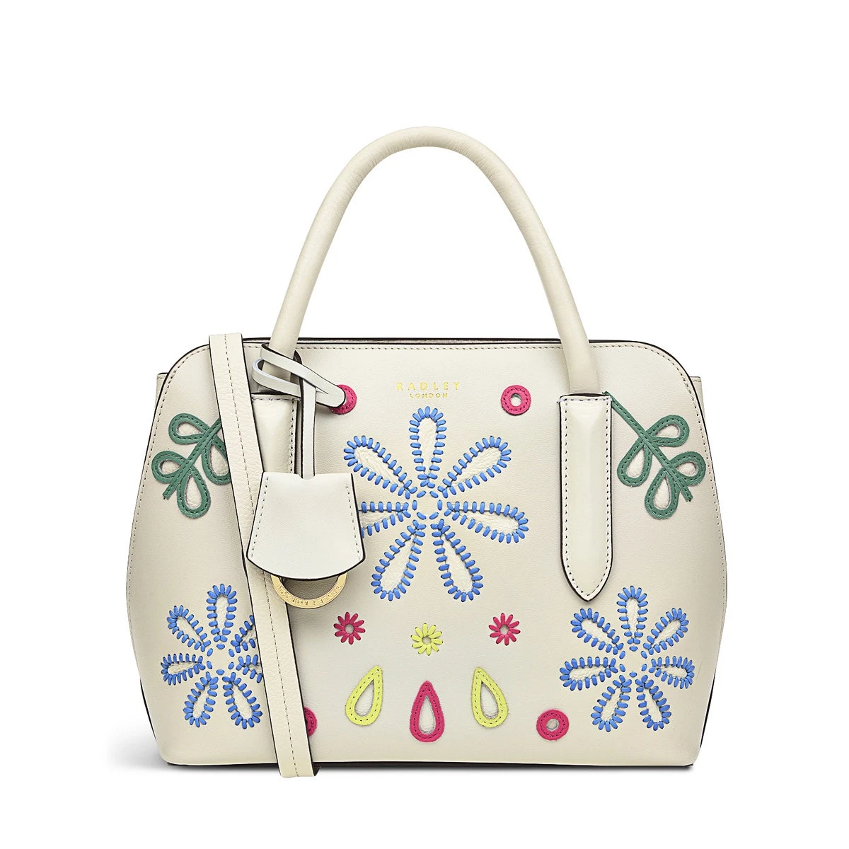 Colourful and crafted (by our talented artisans, of course). This new Liverpool Street 2.0 bag puts a vibrant twist on Broderie Anglaise techniques. That’s because we’ve used applique, inlaid leather and hand-stitching to replicate the traditional floral patterns across our iconic multiway shape.