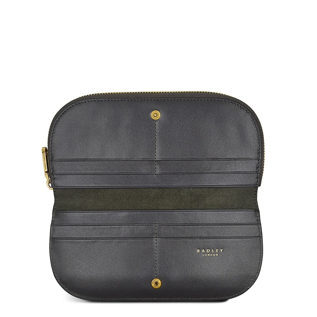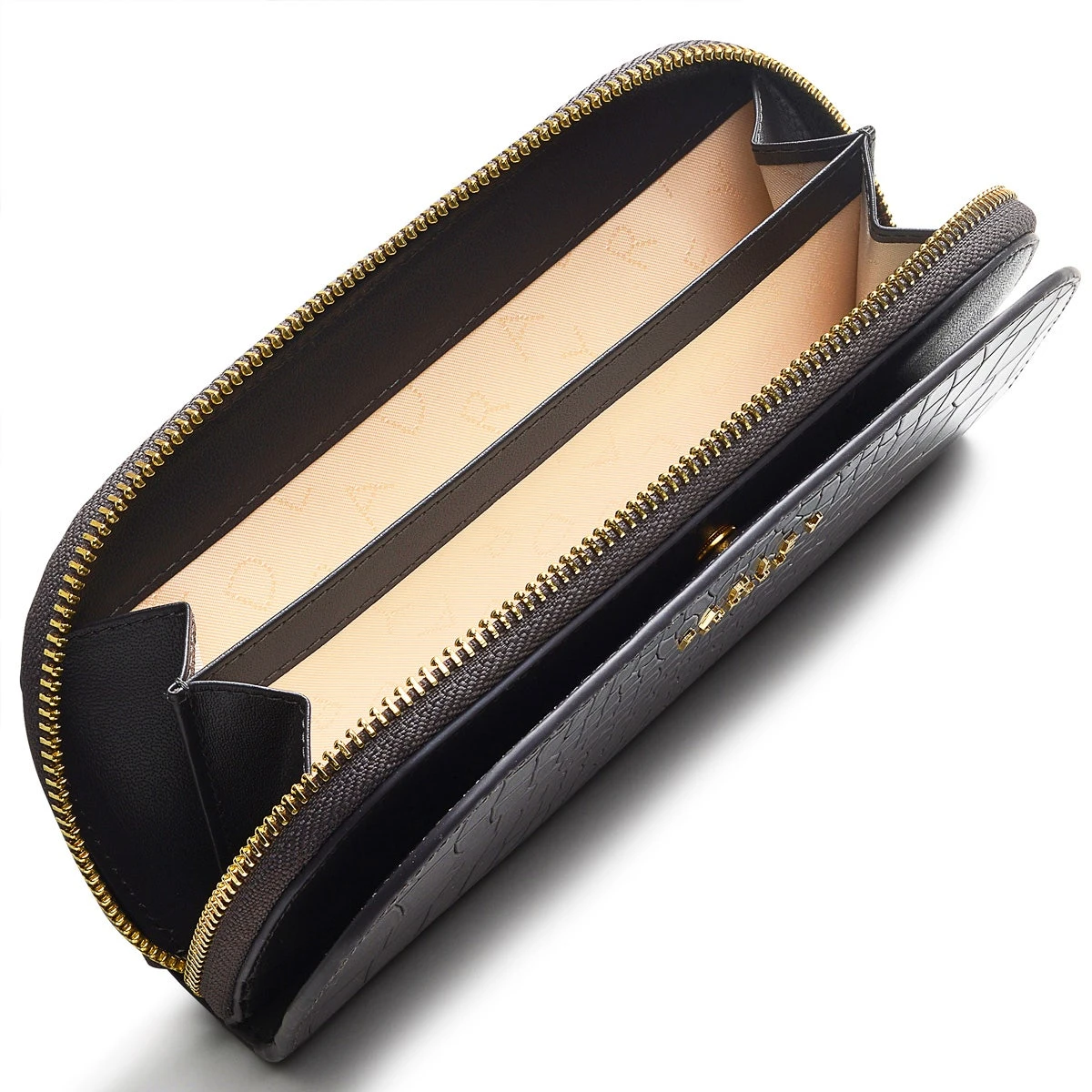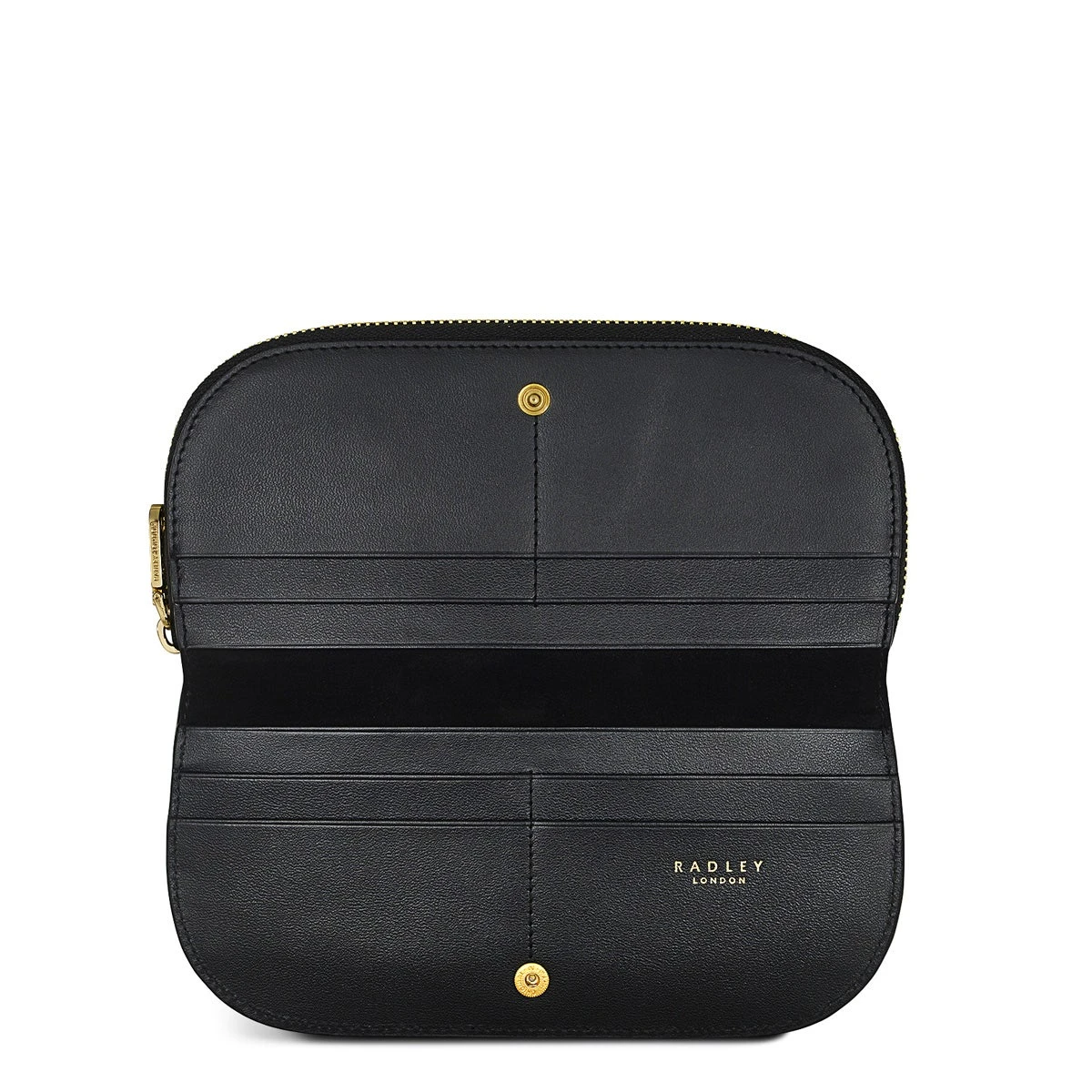 If there’s one thing our iconic Liverpool Street 2.0 bag deserves, it’s a matching purse. One that shares its same curved shape and painted cut edges. One just like this large bifold style in our textured mock croc leather. With leather internal card slots and branded zip-pull hardware, you can rely on it to keep your cash safe (and to always coordinate with your favourite handbag).