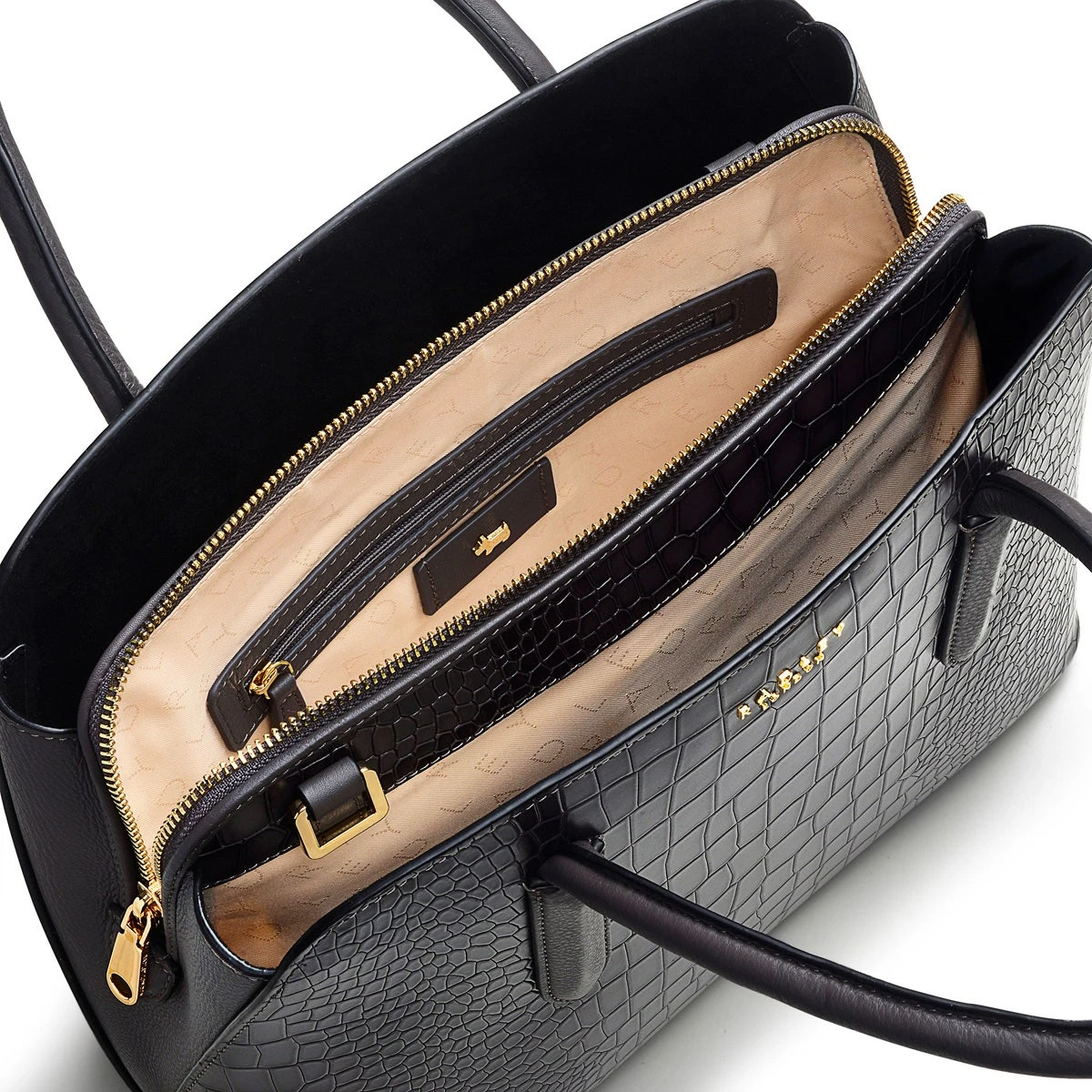 You know this one. It’s been a bestseller since it launched in 2017. Even with an updated softer silhouette and mock croc leather makeover, it’s still iconic. Liverpool Street 2.0 is the bag you always want by your side. Hanging from your arm as you step off the train. Worn hands-free as you pick up a latte from your favourite coffee shop: Crafted in mock croc leather, Twin grab handles with engineered handle tabs, Detachable cross body strap, Softer, curved shape, Cross over side gussets, Triple compartment interior, Zipped centre compartment with branded zip pulls, Slip side pockets with bonded faux suedette backing , Internal zip and slip pockets, Radley jacquard fabric lining, Foil embossed Radley London logo , Detachable Scottie dog key fob, Comes with a Radley London dust bag