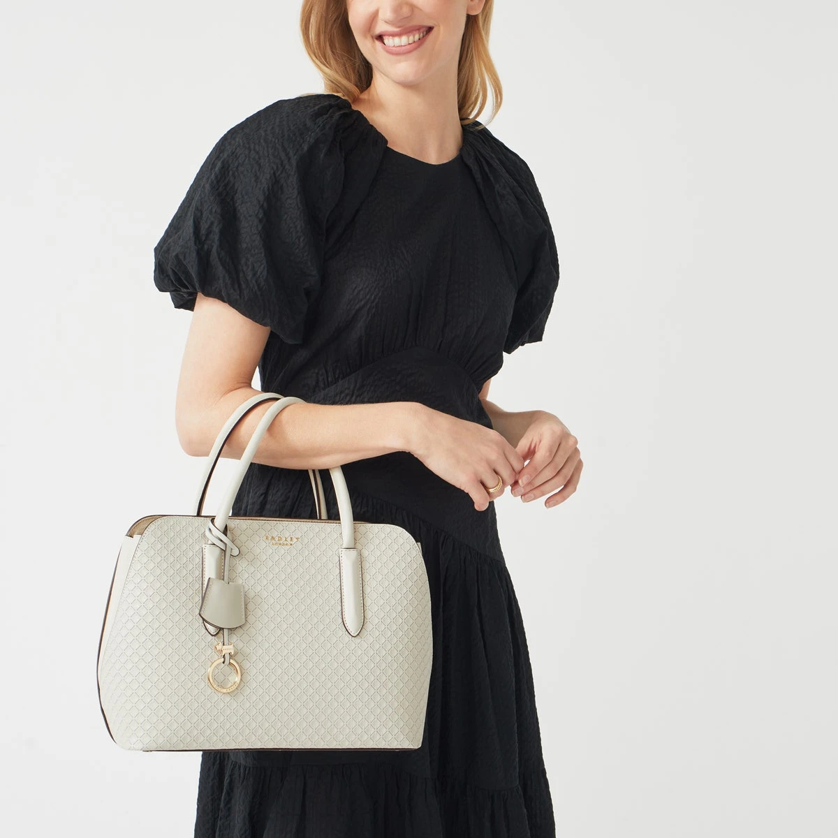 With an eye for beautiful leathers. Our Design Team knew this floral embossed texture leather would look perfect on the Liverpool Street 2.0 multiway bag. An updated bestselling style, complete with its signature painted cut edges and all the iconic features of course.