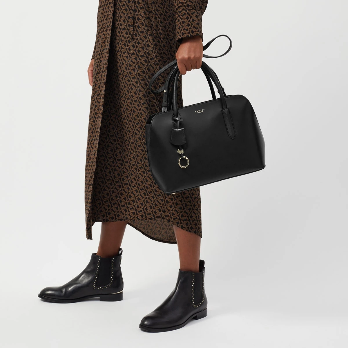 Our Liverpool Street bag has been a favourite among Radley London fans for years, but for the new season, our designers have embraced the challenge to update this beloved staple. Let us introduce you to Liverpool Street 2.0; this multiway bag features the same triple compartment interior and detachable cross body strap, but its premium leather silhouette has been softened with elegantly rounded corners and moulded handles. It’s also finished with our new Radley London key fob – a neat detachable charm where you can find our playful Scottie dog!
