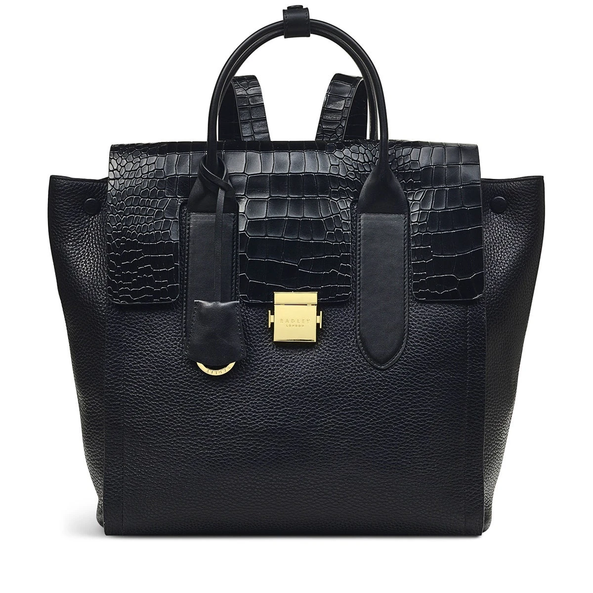 Our Mayfair Lane collection lives up to its name, sharing the same glossy credentials as the sophisticated London area. Take this spacious backpack with its grained leather body and gleaming push lock fastening. It’s smart, timeless and cleverly designed too – we love the press stud wings and the mock croc-textured flap, which is shaped to sit around the padded handle tabs.
