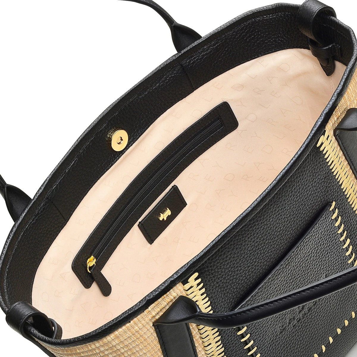 Hand-finished. Our artisans are talented like that. See the colorful leather stitching around the front pocket and along the edges of the Park Place grab bag? That’s all their handiwork. Then there’s the winged sides that tuck in and secure with a press stud tab – our Design Team get the credit for that.