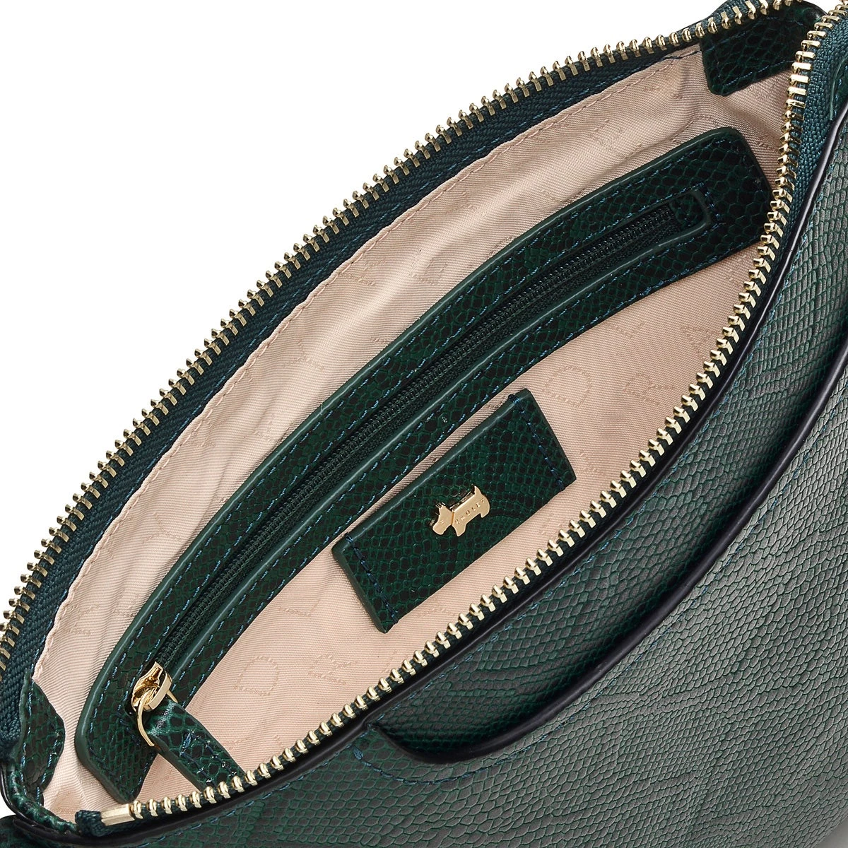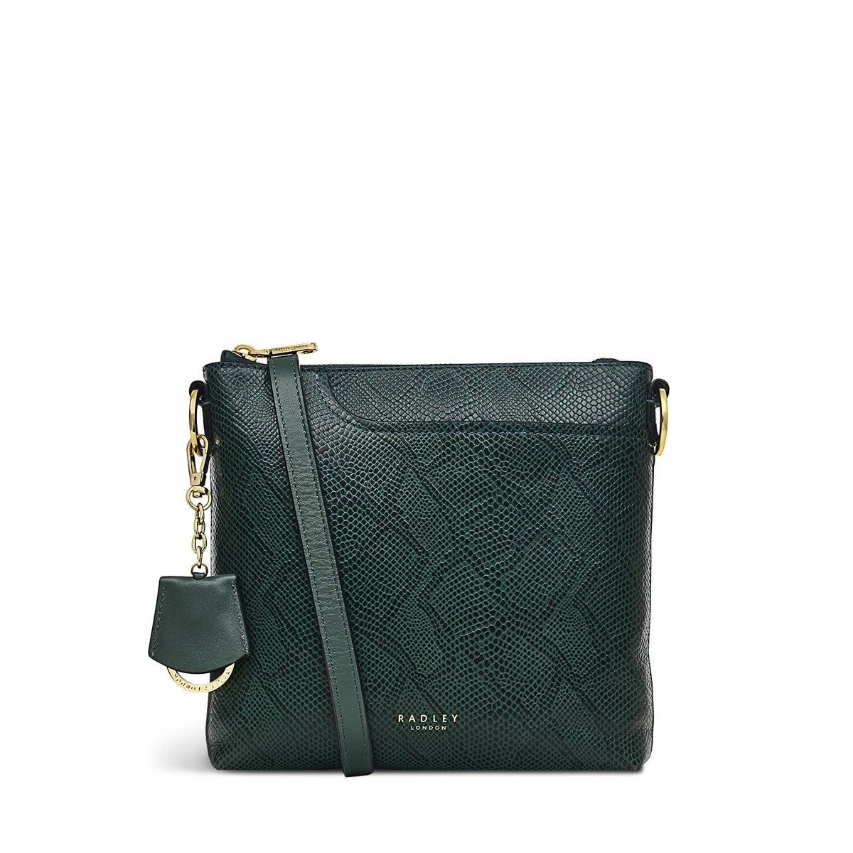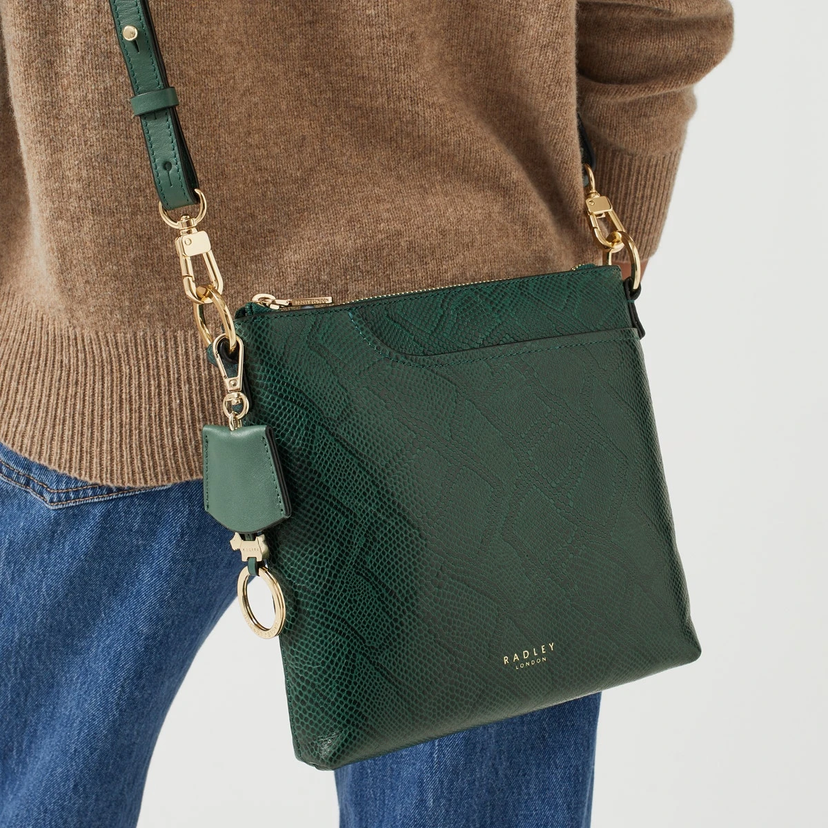 Our iconic cross body bag with a new look. Pockets 2.0 is now available in faux snakeskin-textured leather. A modern update on the original, this bag is still recognisable thanks to the slim shape and signature details. We mean the namesake curved front pocket, the slim cross body strap and the Scottie dog key fob of course.
