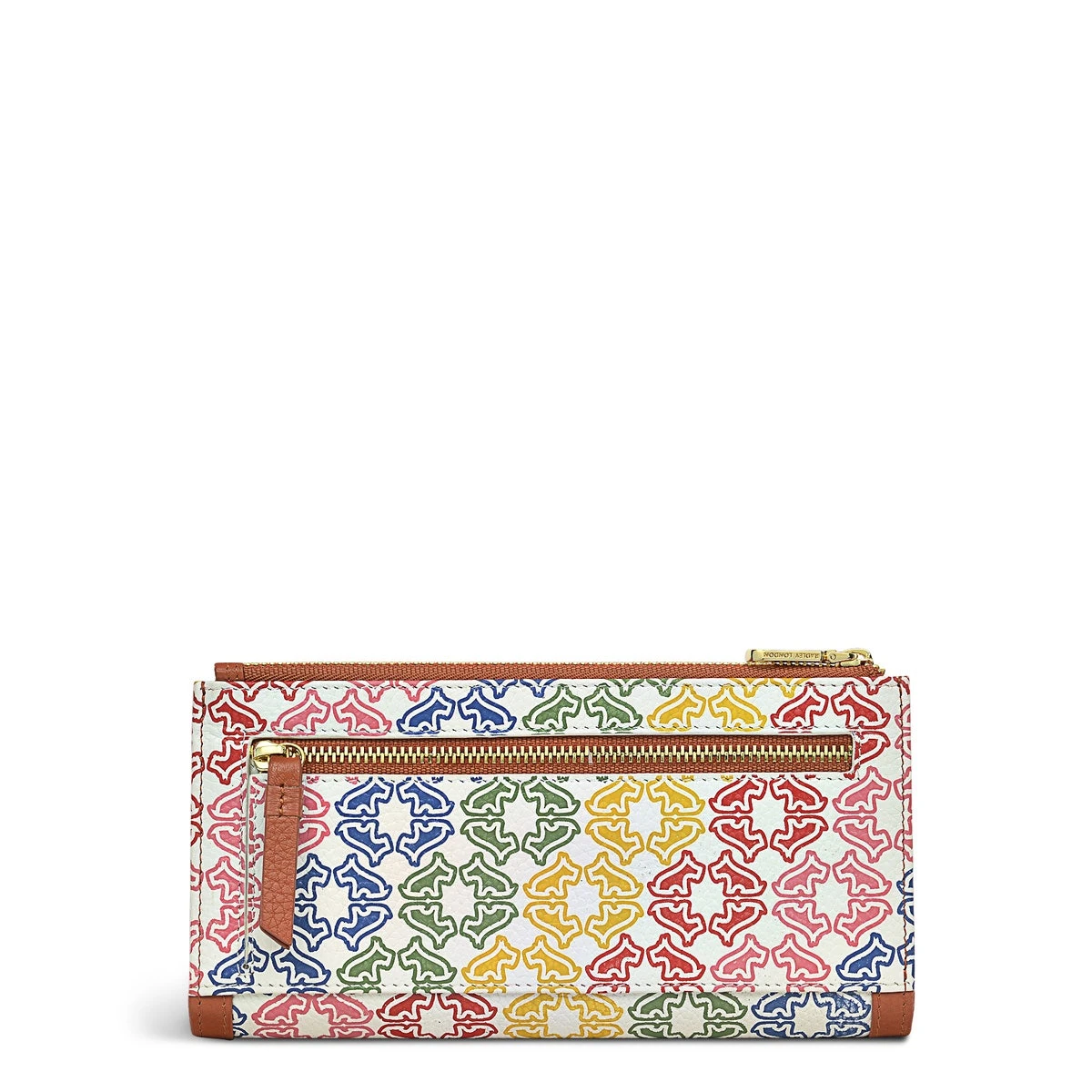 In honour of Pride, and because we want to celebrate love every day. We’ve created this large bifold matinee purse with our new Heirloom print. Crafted in soft grain leather with the same practical internal compartments and pockets you’ll find in any of our large purses. And did we mention the rainbow-coloured card slots? They match the vibrant shades we’ve used to create our signature Scottie pattern.