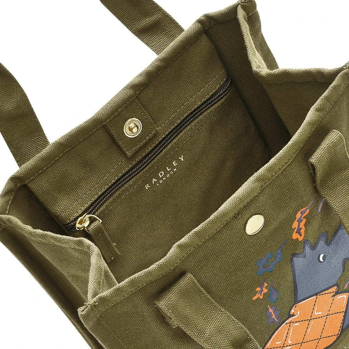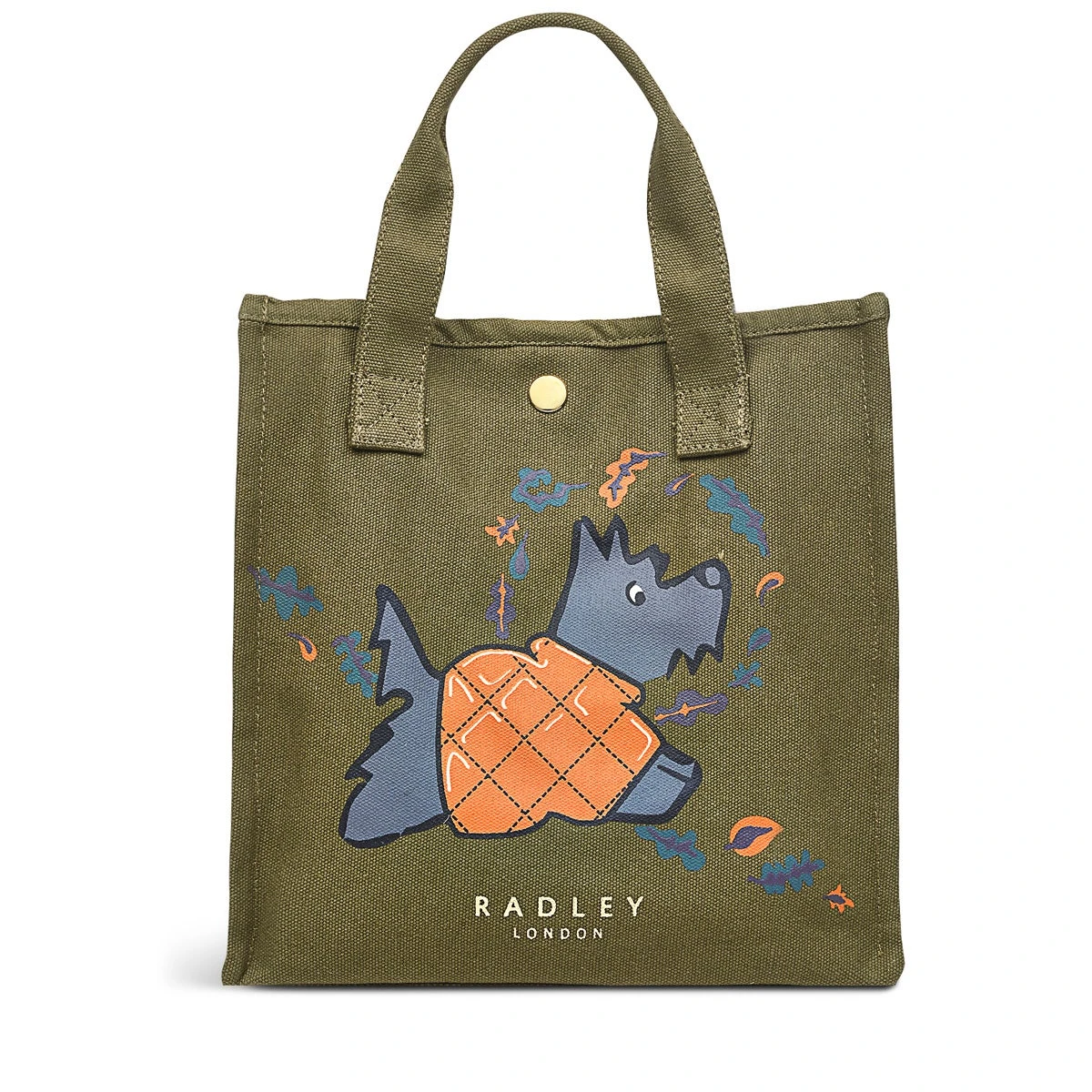 Puffer coats are a big trend this season. So big, even our Scottie is taking note. Spot him and a friend playing in the leaves, wrapped in their very own puffy jackets in the print on this square tote bag. Crafted in recycled cotton canvas, making it part of our Radley Responsible range.