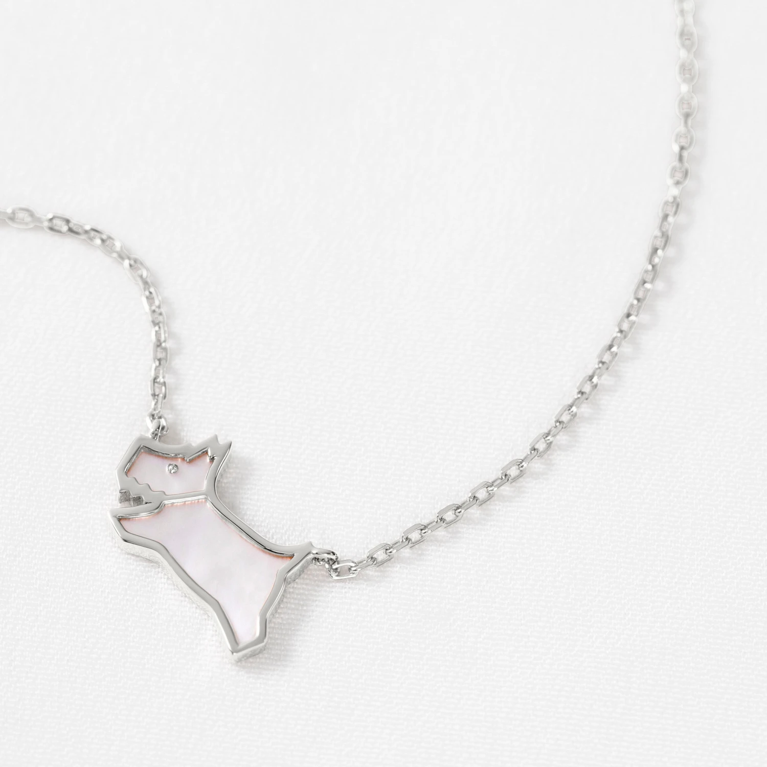 -Jumping dog pendant with white mother-of-pearl detail