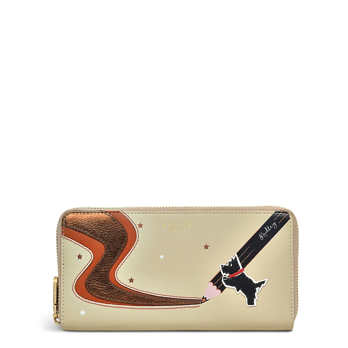 We’re predicting that our Radley Creates bag is going to be a sellout. What better reason then to make a matching matinee purse with all the same features? That includes Radley dog showcasing his artistic flair with a metallic swirl appliqué to the front. And the same screen-printed pencil. It’s every artist’s dream.