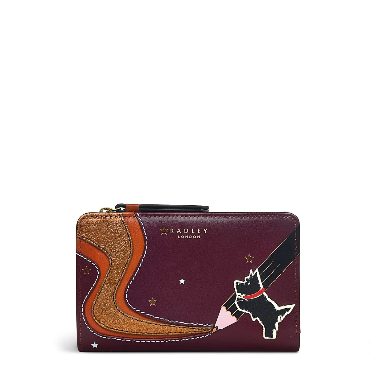 We’re predicting that our Radley Creates bag is going to be a sellout. What better reason then to make a matching bifold purse with all the same features? That includes Radley dog showcasing his artistic flair with a metallic swirl appliqué to the front. And the same screen-printed pencil. It’s every artist’s dream.