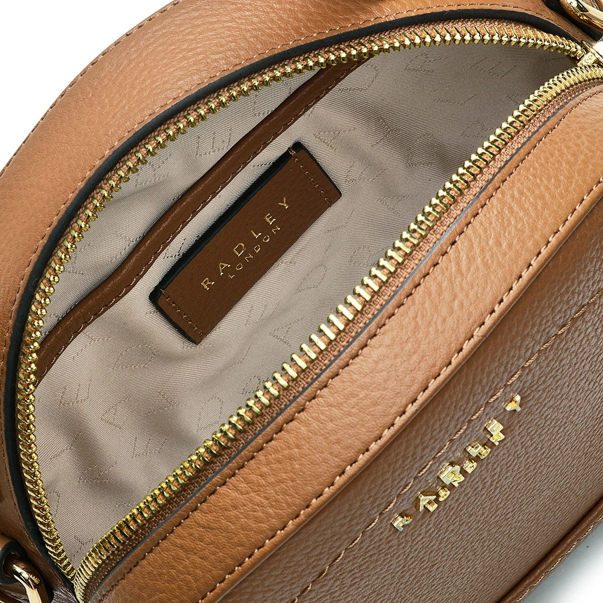 A slim shape to have by your side with a unique round silhouette and inset stitch details. This is the mini cross body bag from the Reeves Close collection. Its grained leather and high-shine gold hardware go hand-in-hand. Like wine and cheese. Or strawberries and cream. And just like them, this bag is something we can’t resist.