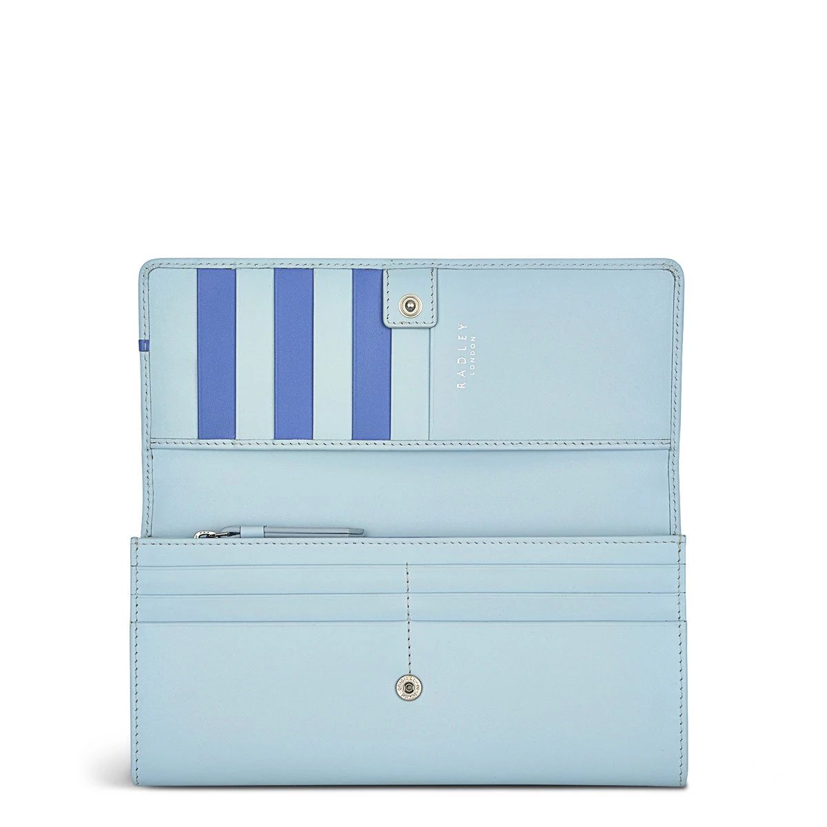 Making new friends everywhere he goes. Spot Radley dog introducing himself to the fish in the pond as he enjoys a walk in one of our city’s parks. A moment captured in leather appliqué on the Reflections matinee purse – a spacious accessory with colourful card slots and lots of charm.