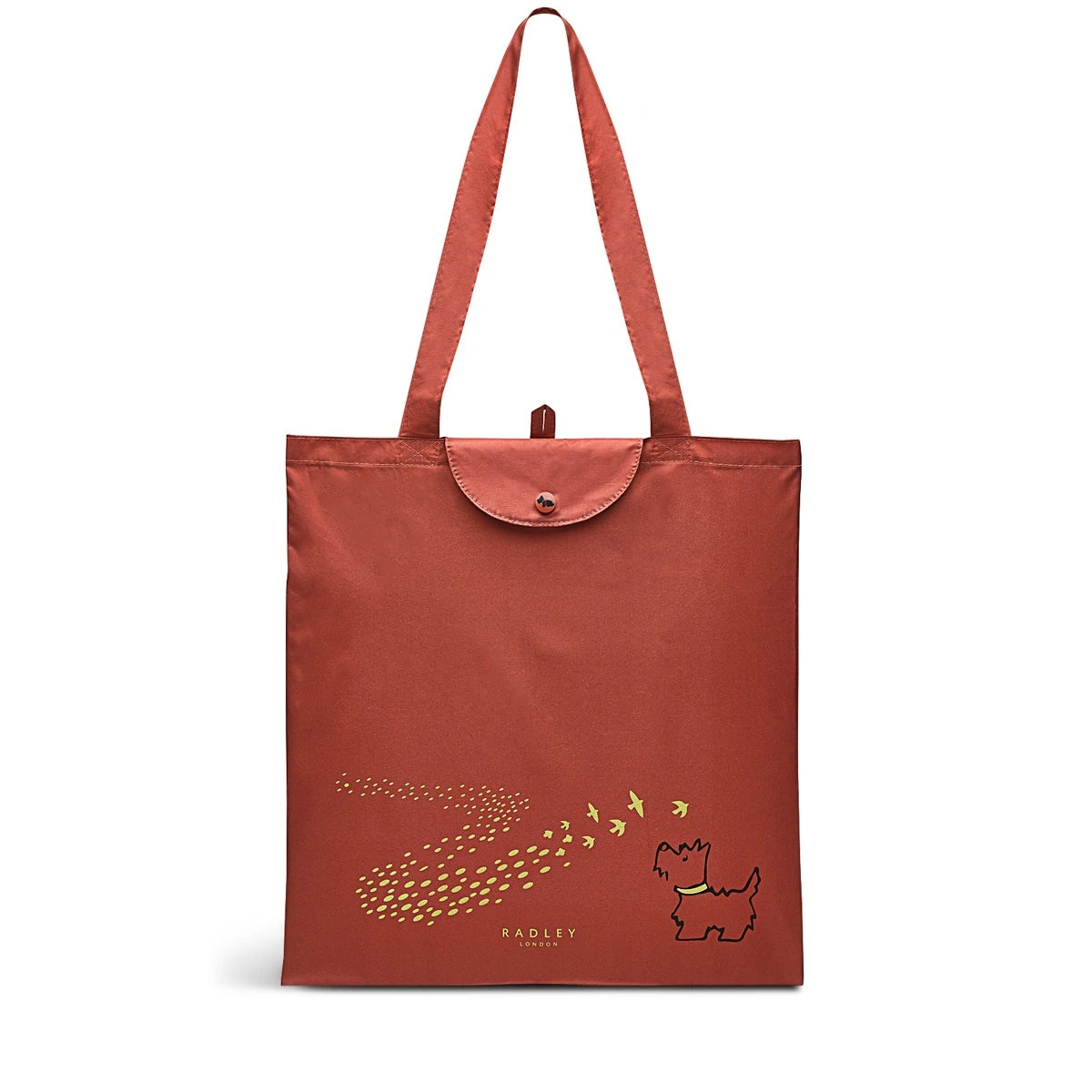 Mesmerised. Our Scottie can’t take his eyes of the fluttering flock of birds on our Take Flight foldaway bag. Crafted using recycled materials, this printed accessory is a must-have – keep it close to hand, ready for any spontaneous shopping trips.