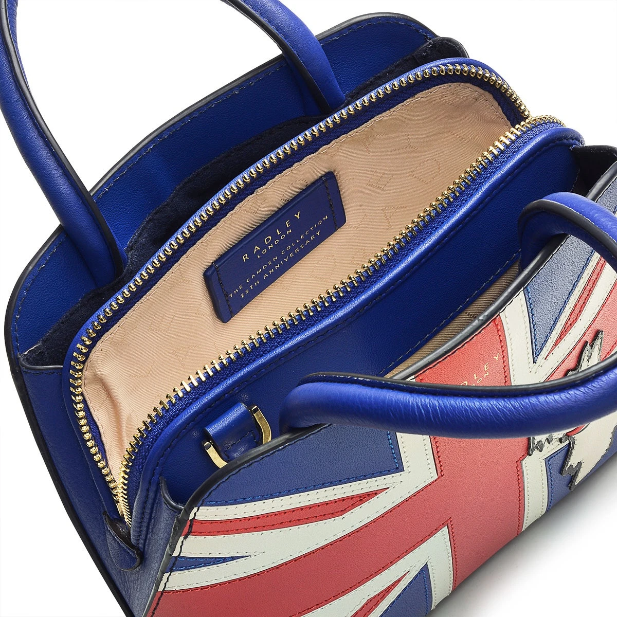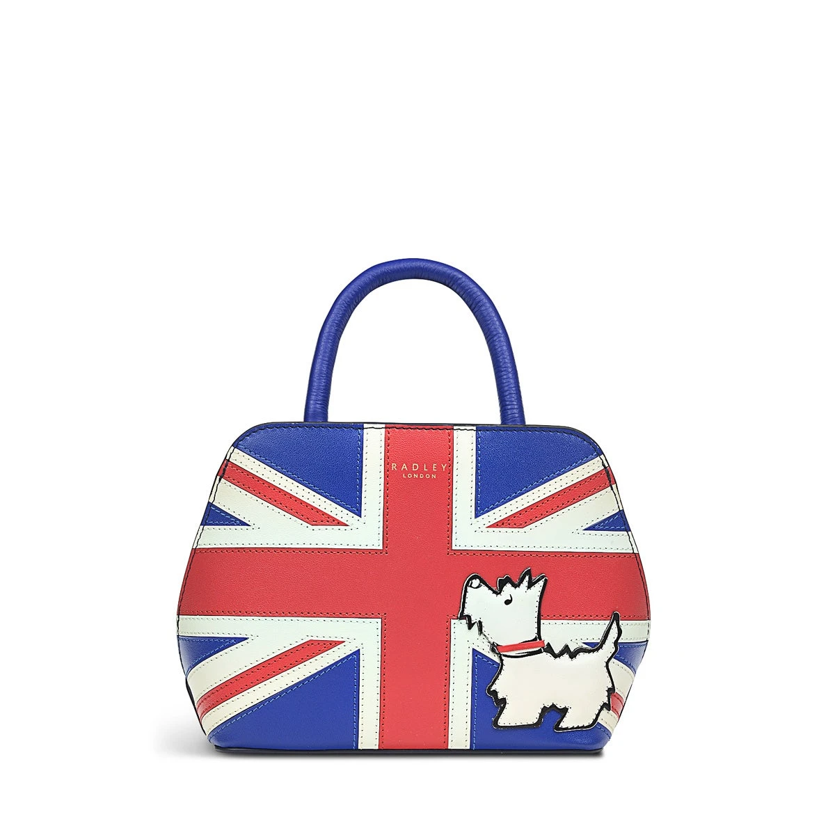 A British icon. This mini version of our Liverpool Street 2.0 multiway bag has been transformed into the Union Jack (and features our Scottie of course). Crafted in smooth leather with layered leather appliqué flag details, this bag is the perfect way to celebrate our 25th birthday.