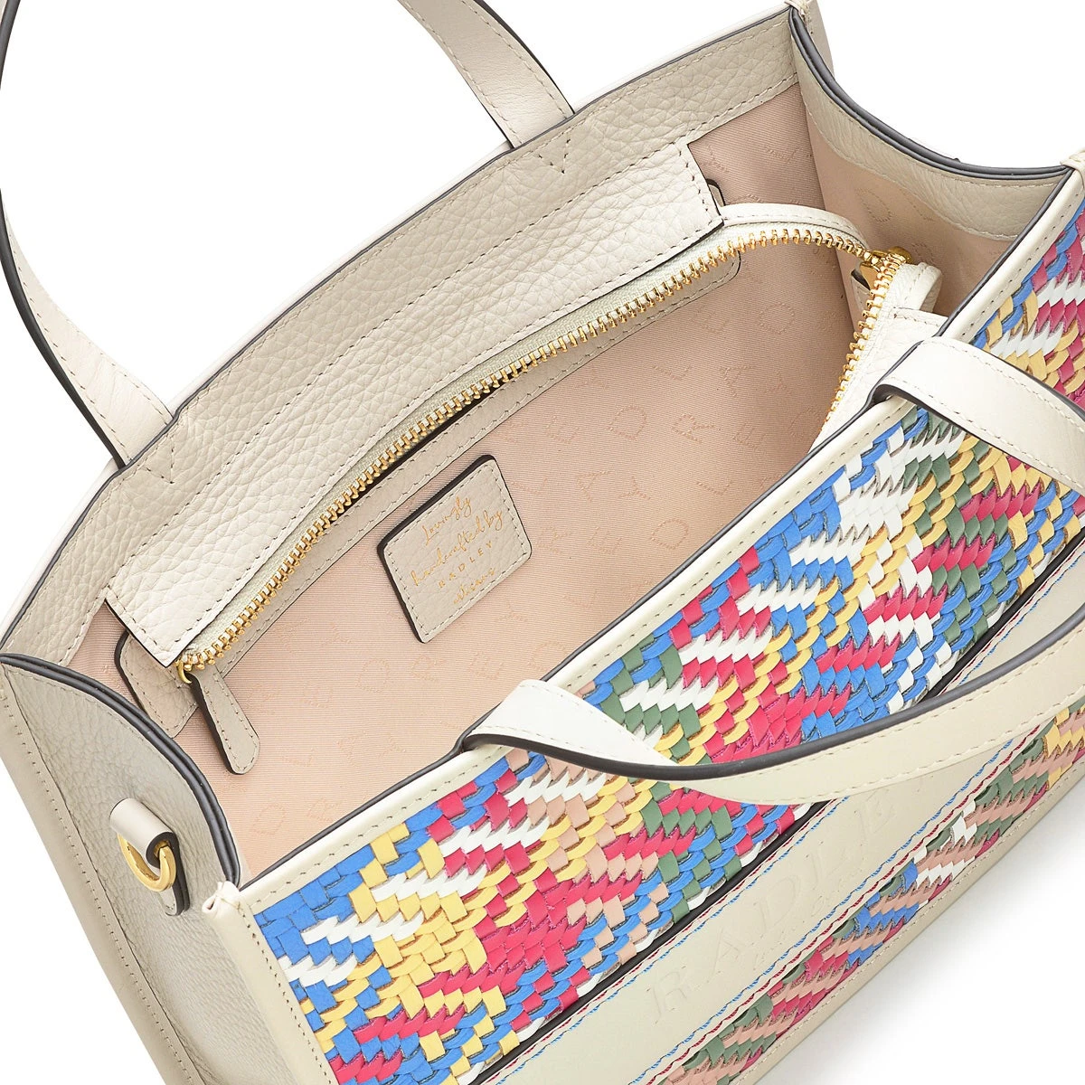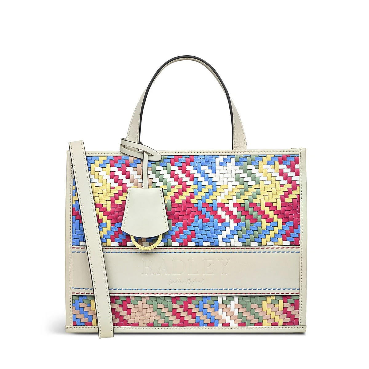 Intricate craftsmanship. It’s always in, here at Radley London. And this season, we’ve used it to create the Tilstone Close bag. See it across the hand-woven leather panel and logo-embossed trim with colourful edge stitching. Our signature boxy grab shape, finished with signature bound edges and interior card slots.