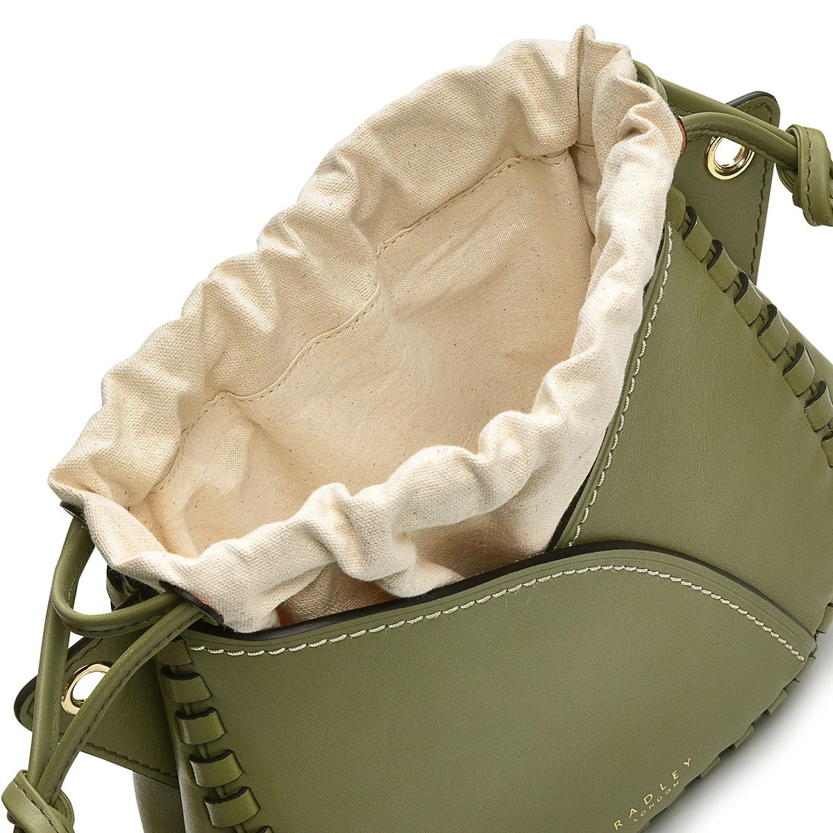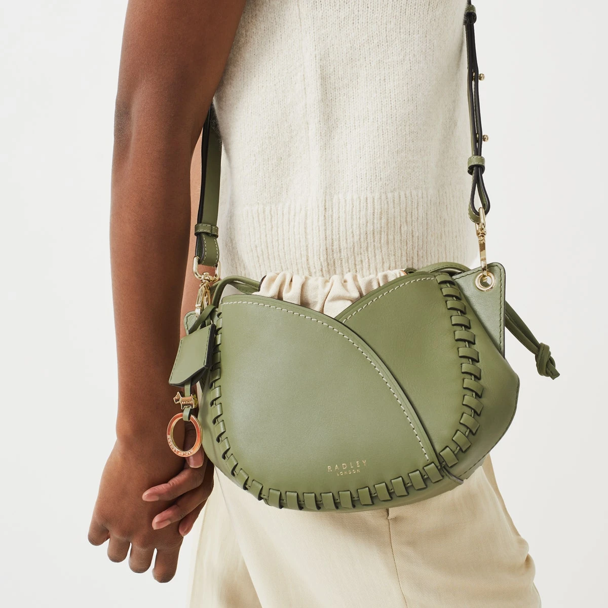 A bag like no other. Tulip Street is aptly named after its curved flower-inspired shape. A new edition of our cross body bag, this one has been made even more special with hand-crafted leather stitching around its edges. Finished with metal logo letters and an interior drawstring canvas pouch to keep your items safe.