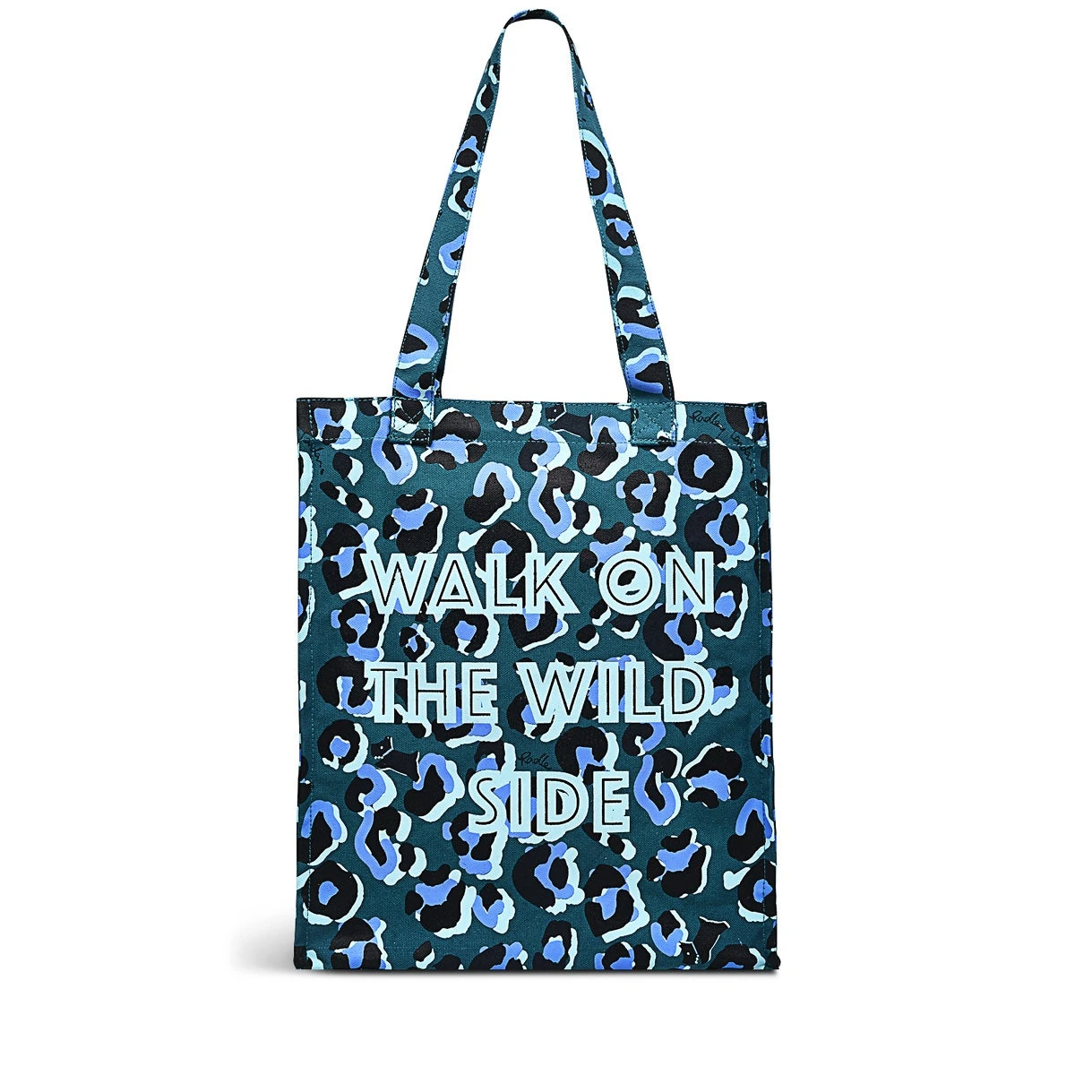 For strolling through your local park or heading to the farmer’s market. This part-recycled cotton canvas tote encourages you to Walk on the Wild Side. That’s the print talking – the bold leopard spots with a Scottie or slogan print on each side.