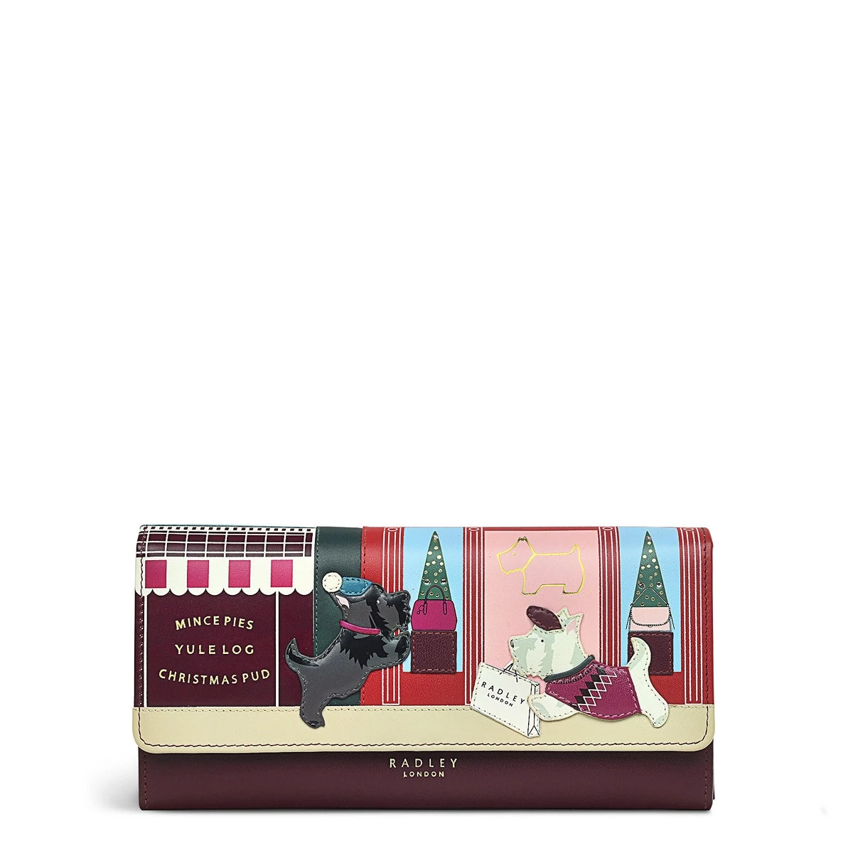 Window Shopping is this years Christmas picture purse. It takes us through the streets of London, past all the decorative, dressed up storefronts that have inspired us this festive season. Crafted in leather with appliqué Scotties (who are ticking off the last gifts on their list) and screen prints. This is the collectible matinee purse everyone wants to find under their tree on 25th December.