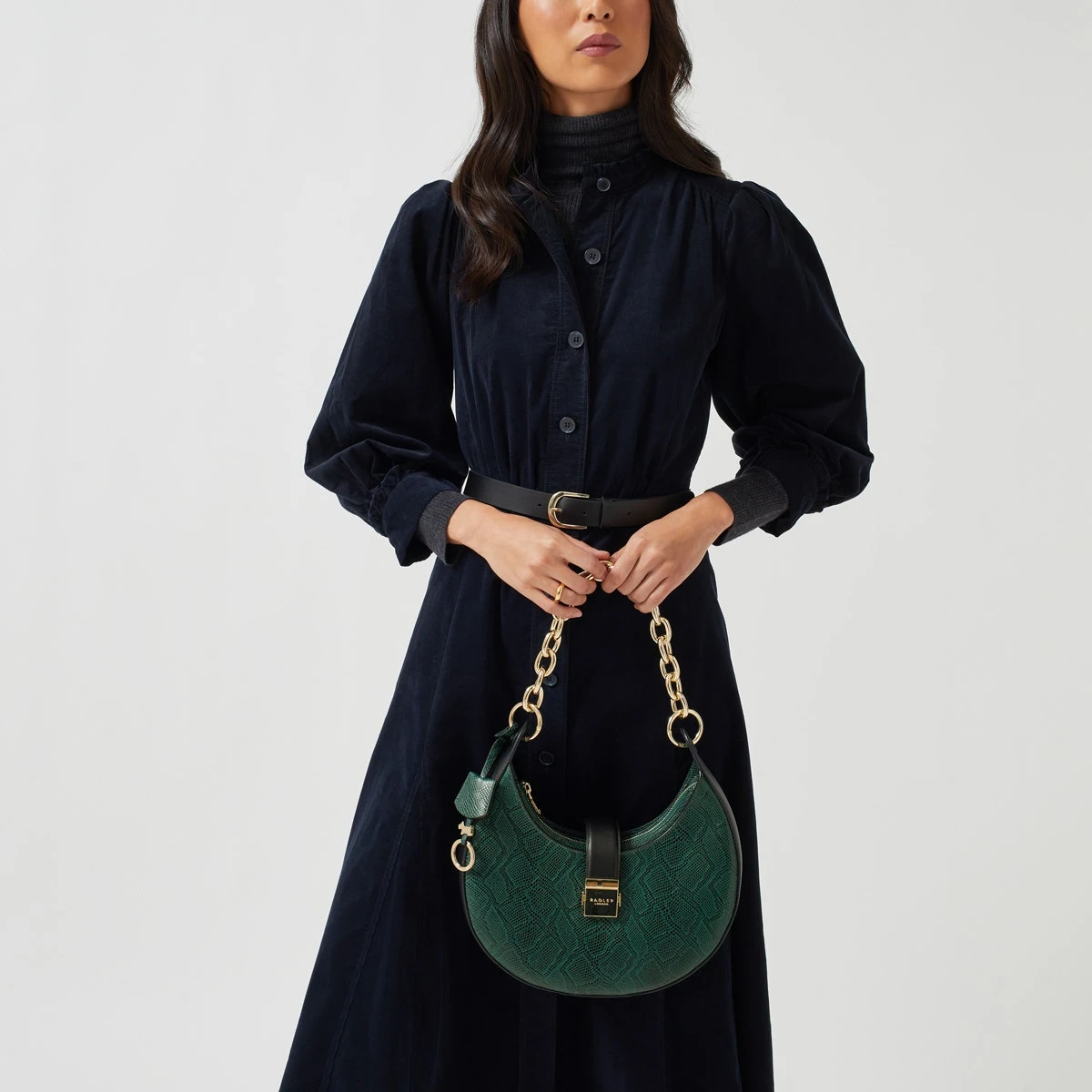 Our Winter Place bag would look just as at home on this season’s catwalks as it does on your shoulder. That’s all thanks to the on-trend scooped shape, shiny gold chain strap and chunky push lock hardware. Crafted with faux snakeskin textured leather and smooth trims, there’s no doubt it’ll be one of our most coveted fashion styles this season.